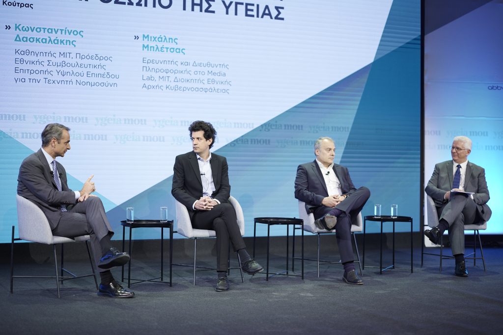 Σε ερώτηση για το τι μπορεί να προσφέρει η τεχνητή νοημοσύνη στον τομέα της Υγείας, ο Κωνσταντίνος Δασκαλάκης που είναι και πρόεδρος της Συμβουλευτικής Επιτροπής Υψηλού Επιπέδου για την Τεχνητή Νοημοσύνη στην Ελλάδα τόνισε ότι η χώρα μας μπορεί να καινοτομεί σε αυτόν τον τομέα, είναι έτοιμη και έχουμε την υποστήριξη που χρειαζόμαστε