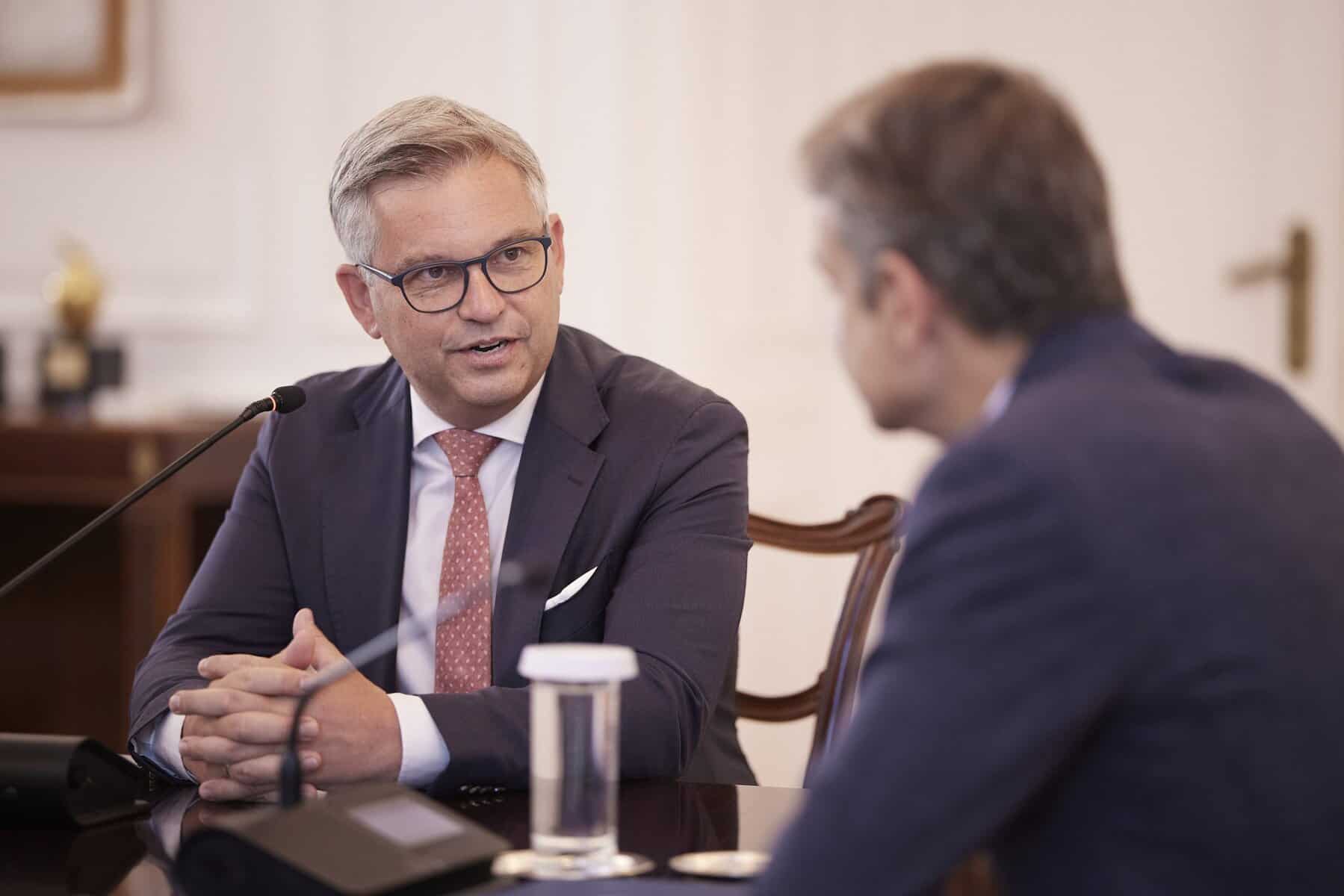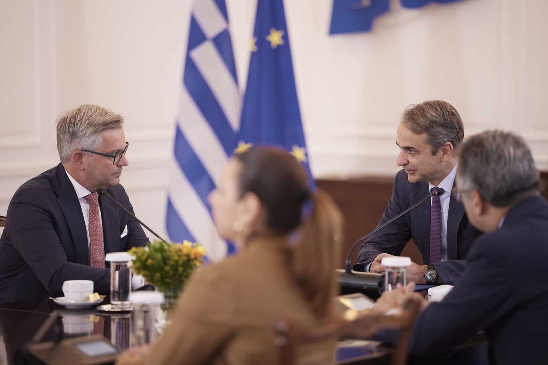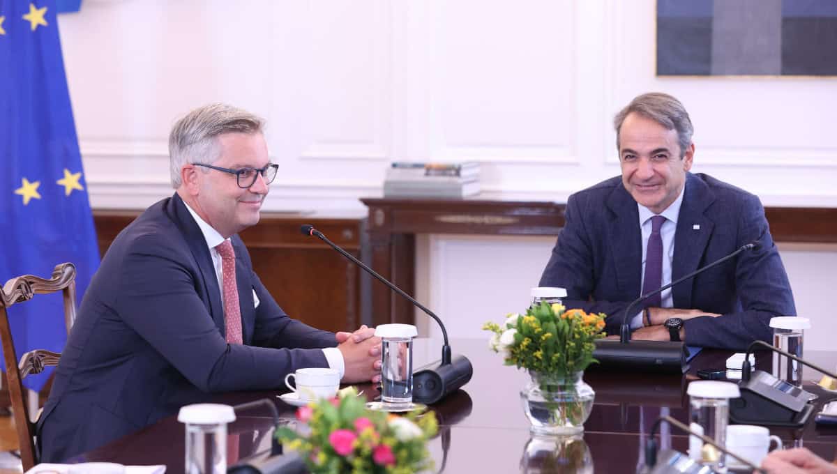 Ο Πρωθυπουργός Κυριάκος Μητσοτάκης συναντήθηκε με τον Ευρωπαίο Επίτροπο Εσωτερικών Υποθέσεων και Μετανάστευσης Magnus Brunner, στο Μέγαρο Μαξίμου.
