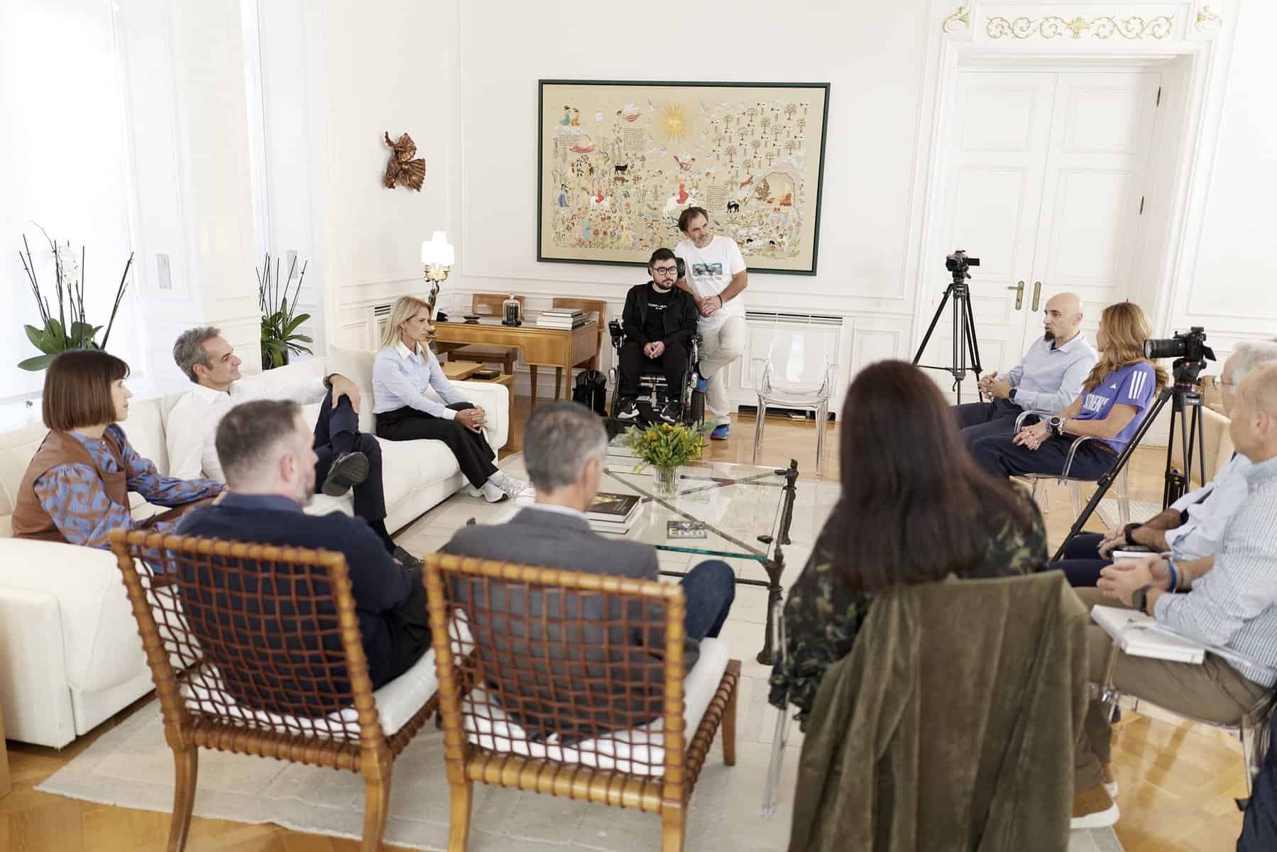 Αλλά νομίζω αυτό το οποίο έχετε πετύχει ο καθένας και η καθεμία ξεχωριστά είναι πολύ σημαντικό και ήθελα να κάνουμε αυτή τη συνάντηση, να μοιραστείτε μαζί μας τις δικές σας εμπειρίες και να στείλουμε ένα ευρύτερο μήνυμα για τη δύναμη όχι μόνο του αθλητισμού, αλλά και τη δυνατότητα που τελικά έχουμε ως άνθρωποι, με τη σωστή προσέγγιση στα πράγματα, να ξεπερνάμε και τις μεγαλύτερες δυσκολίες», ανέφερε ο Πρωθυπουργός κατά την έναρξη της συζήτησης.
