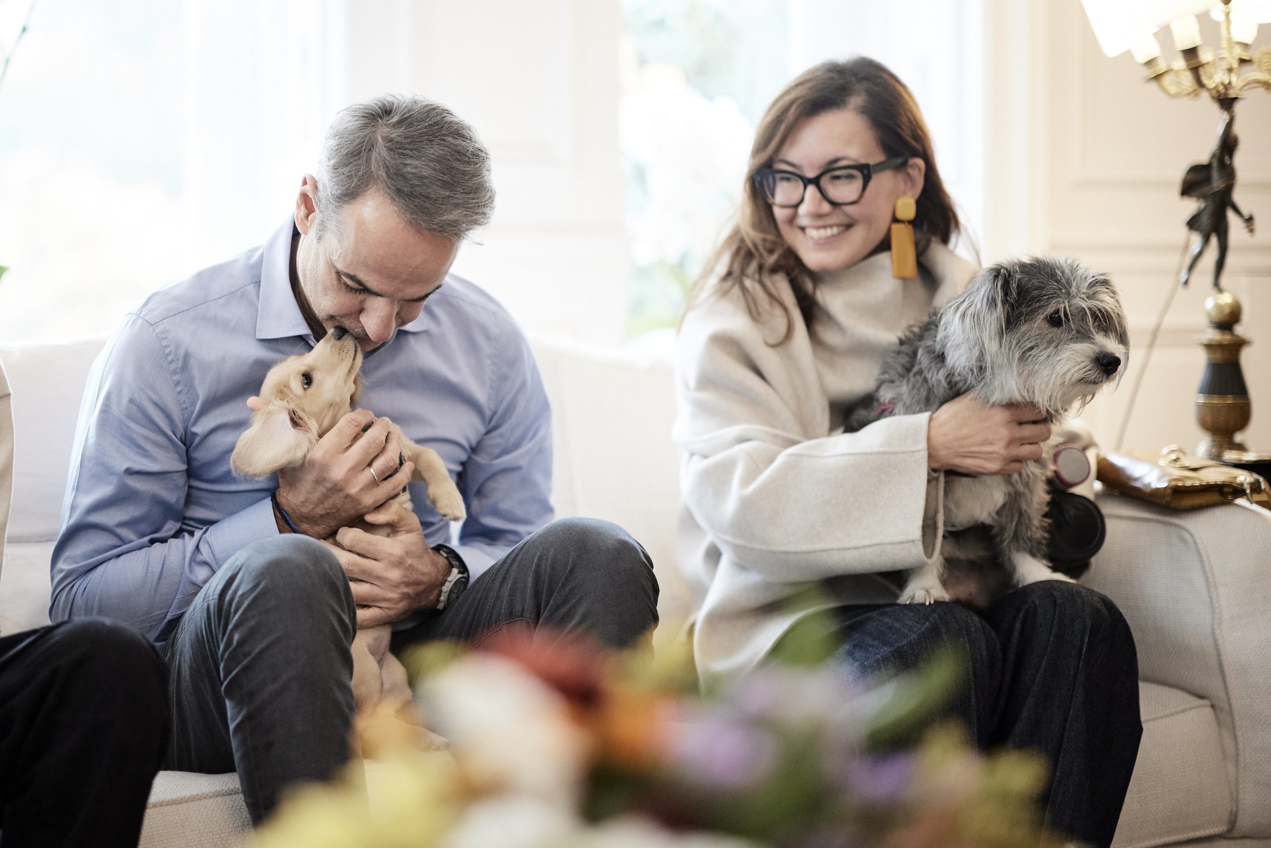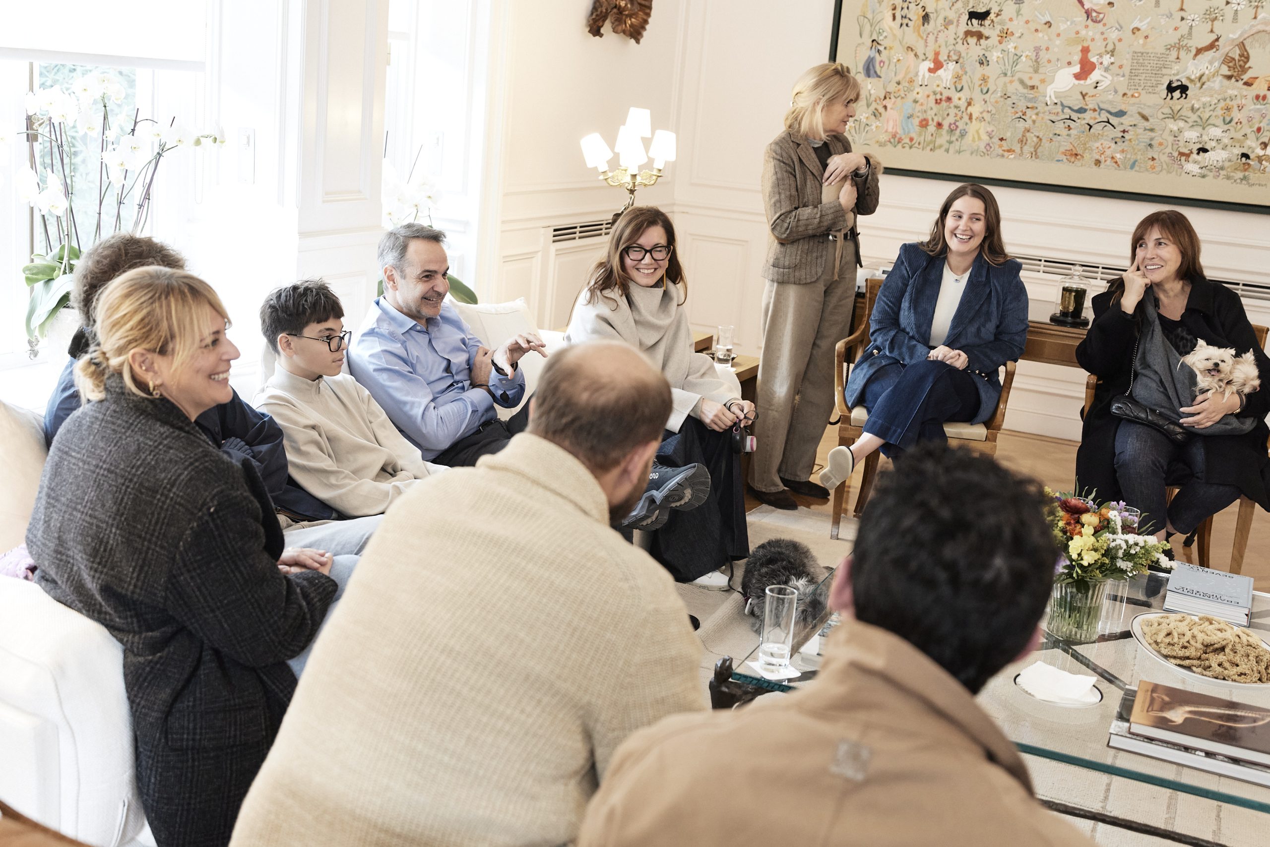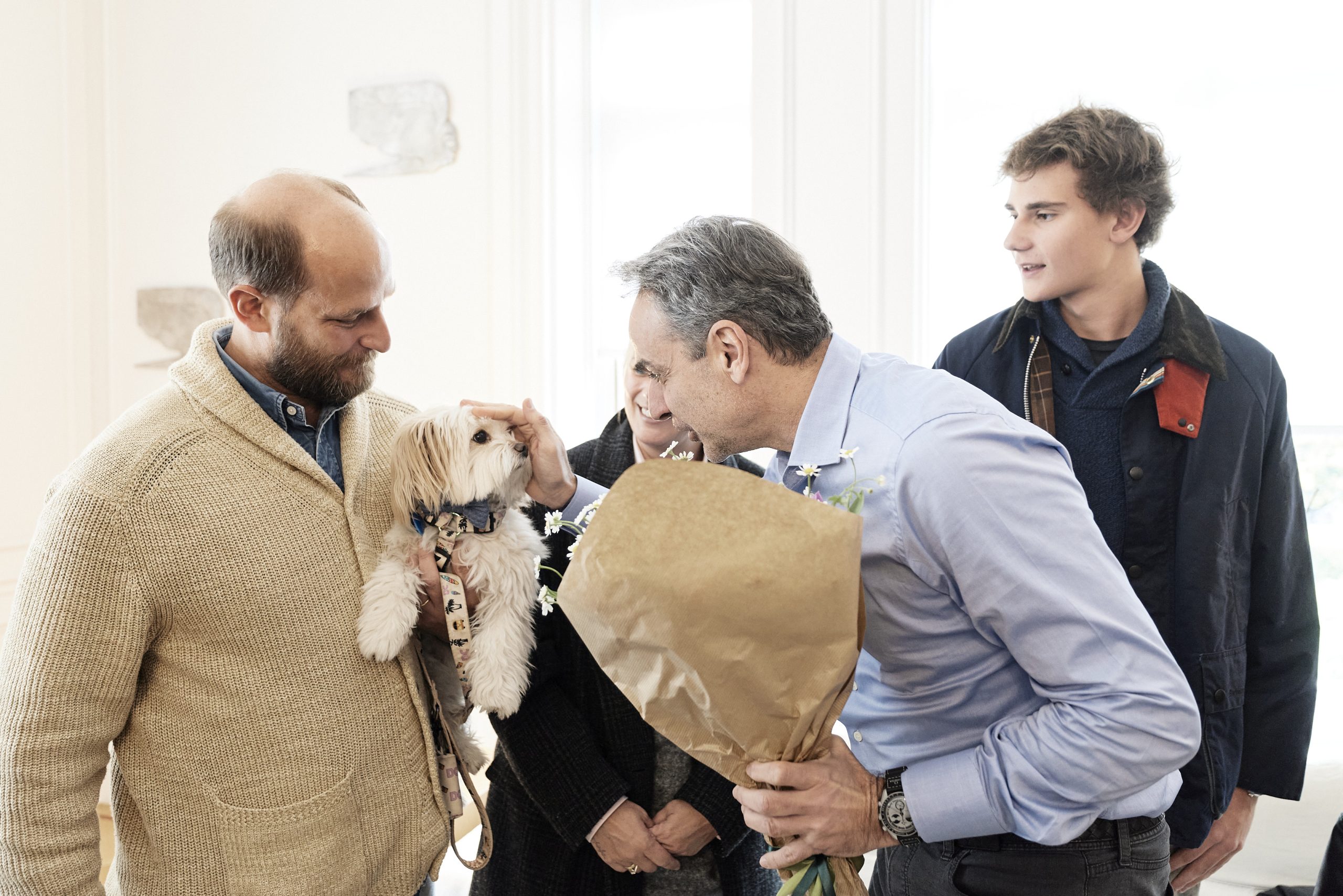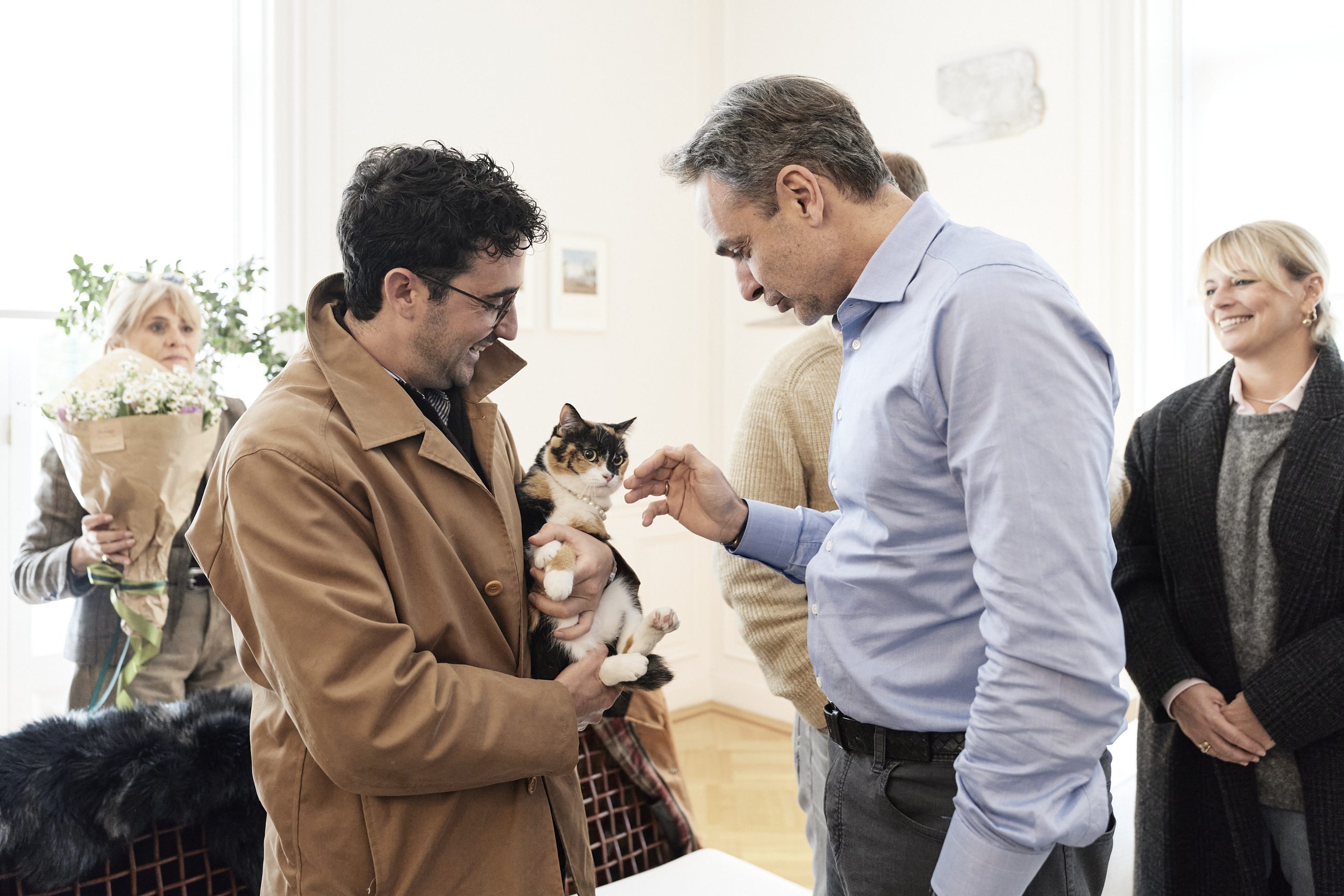 Έλληνες πολίτες που επαναπατρίστηκαν από τη Μέση Ανατολή μαζί με τα ζώα συντροφιάς τους, μέσω της ειδικής πτήσης που οργάνωσε το Υπουργείο Εξωτερικών σε συνεργασία με την Aegean, υποδέχτηκε σήμερα ο Πρωθυπουργός Κυριάκος Μητσοτάκης στο Μέγαρο Μαξίμου.