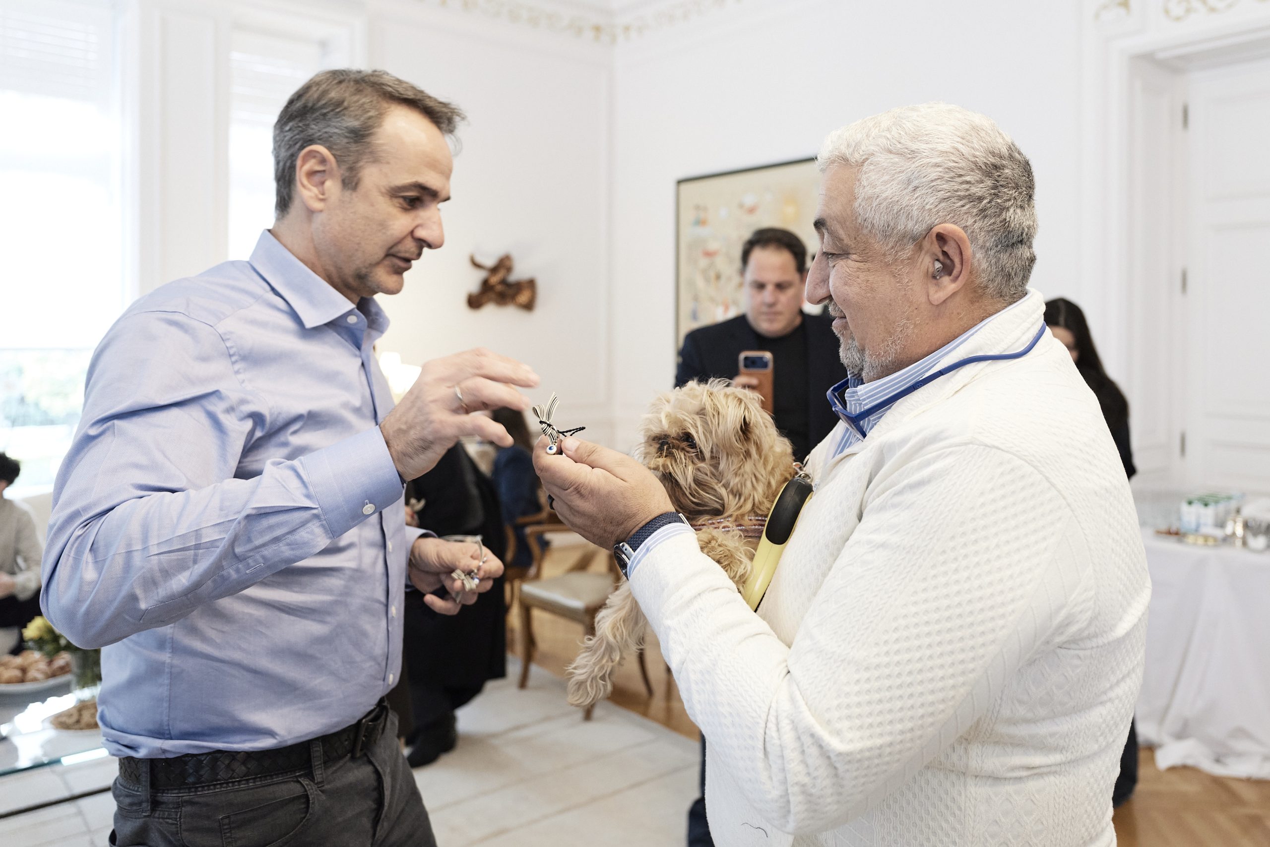 «Πολύ χαιρόμαστε που σας έχουμε εδώ, πρέπει να σας πω ότι ήταν μία από τις πιο δύσκολες αποστολές αυτή που οργανώσαμε, αλλά νομίζω ότι ως άνθρωπος που έχει ζώα δεν μπορώ να φανταστώ πώς θα μπορούσε να φύγει κανείς χωρίς να πάρει τα ζώα του μαζί», είπε ο Κυριάκος Μητσοτάκης.