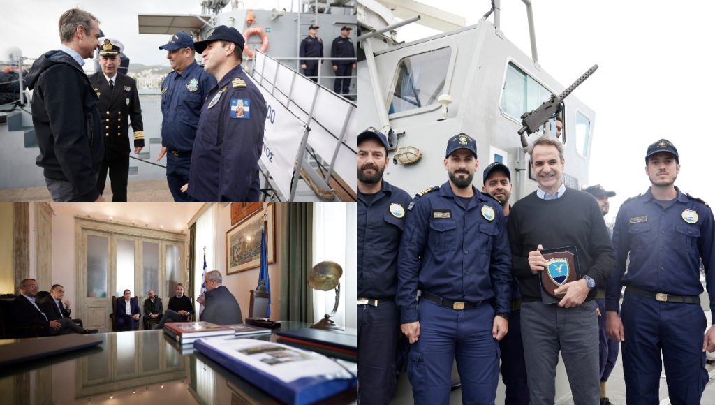 Ο Πρωθυπουργός συνομίλησε στη συνέχεια με στελέχη του Λιμενικού Σώματος και ενημερώθηκε για τη σημαντική μείωση των παράνομων μεταναστευτικών ροών προς τη Λέσβο.