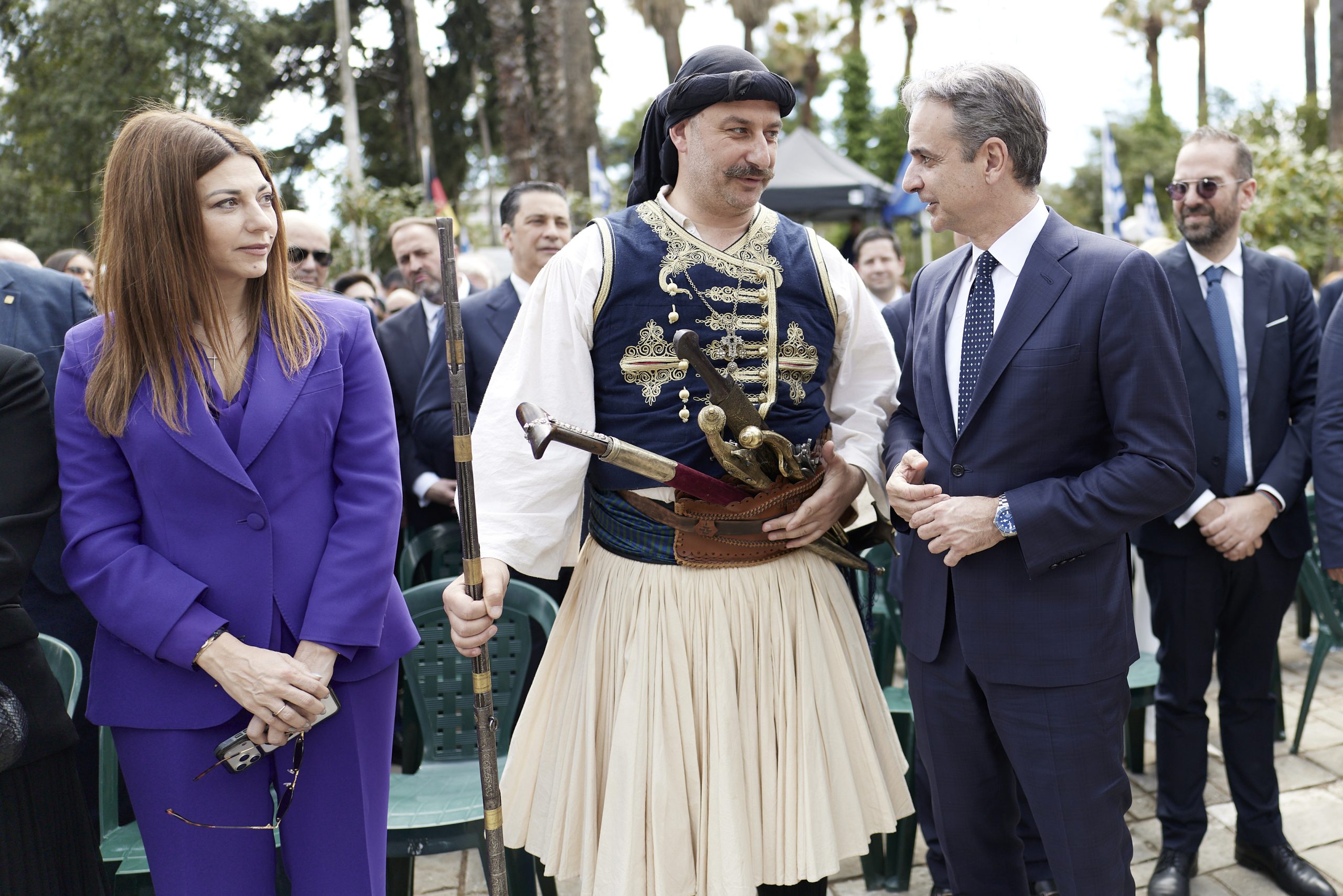 «Σίγουρα», συνέχισε ο Κυριάκος Μητσοτάκης, «πριν από δύο αιώνες η Ελλάδα ήταν ένα μικρό έθνος, δεν είχε καν συγκροτηθεί σε κράτος που ζητούσε με αγωνία τότε τη βοήθεια των μεγάλων δυνάμεων για να δικαιωθεί ο αγώνας της» και συμπλήρωσε: «Σήμερα είμαστε ένα κυρίαρχο κράτος με σημαντικό ευρωπαϊκό και διεθνές εκτόπισμα, με απόρθητα σύνορα και με πανίσχυρες Ένοπλες Δυνάμεις. Με μία δυναμική οικονομία που στηρίζει όσο καλύτερα μπορεί την κοινωνία, αλλά και με ενωμένους τους πολίτες της. Αυτή η αναβαθμισμένη θέση, μάς επιτρέπει να είμαστε παρόντες όπου μας χρειάζεται ο Ελληνισμός, κάτι που αποδείξαμε πρόσφατα με την άμεση υποστήριξη μας στην Κύπρο απέναντι στους κινδύνους από τη σύρραξη στο Ιράν, παραμένοντας ένας πυλώνας σταθερότητας σε ένα κόσμο αστάθειας και μία χώρα σε αναπτυξιακή τροχιά εν μέσω ενός αβέβαιου διεθνούς περιβάλλοντος».