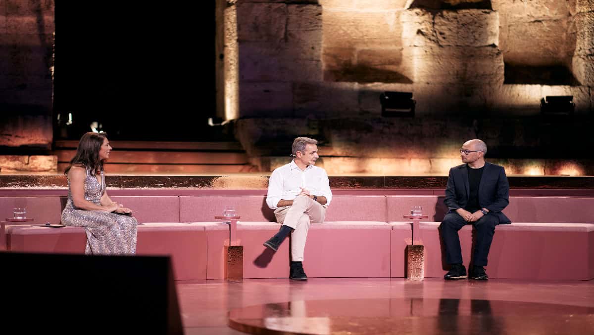 Linda Rottenberg: Κύριε Πρωθυπουργέ, γνωριστήκαμε πριν από πολλά χρόνια, όταν σπουδάζαμε φιλοσοφία και κοινωνική θεωρία στο Χάρβαρντ. Υπήρχε μάλιστα ένα μάθημα με τίτλο «Thinking about Thinking», το οποίο στην αρχή έδινε έμφαση στην αρχαία Αθήνα. Βρισκόμαστε εδώ, στο Ηρώδειο. Όταν σκέφτεστε το μέλλον της τεχνητής νοημοσύνης, ποιες αξίες από το παρελθόν της Ελλάδας θα πρέπει να μας καθοδηγούν;