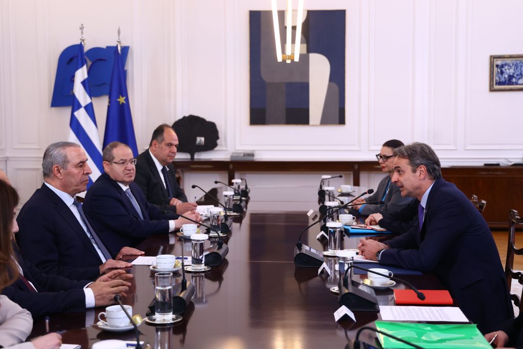 Ο Πρωθυπουργός Κυριάκος Μητσοτάκης συναντήθηκε σήμερα στο Μέγαρο Μαξίμου με τον Αντιπρόεδρο της Παλαιστινιακής Αρχής, Hussein al-Sheikh.