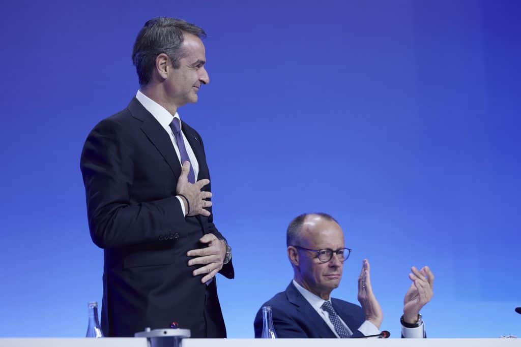 Απευθυνόμενος στον Φρίντριχ Μερτς ο Έλληνας πρωθυπουργός έπλεξε το εγκώμιο του νέου Γερμανού Καγκελάριου για τις θέσεις που έχει εκφράσει για την ΕΕ και σημείωσε με έμφαση ότι «η ηγεσία δεν έχει να κάνει με τις ιδεολογίες αλλά με το σθένος για την εξεύρεση λύσεων».