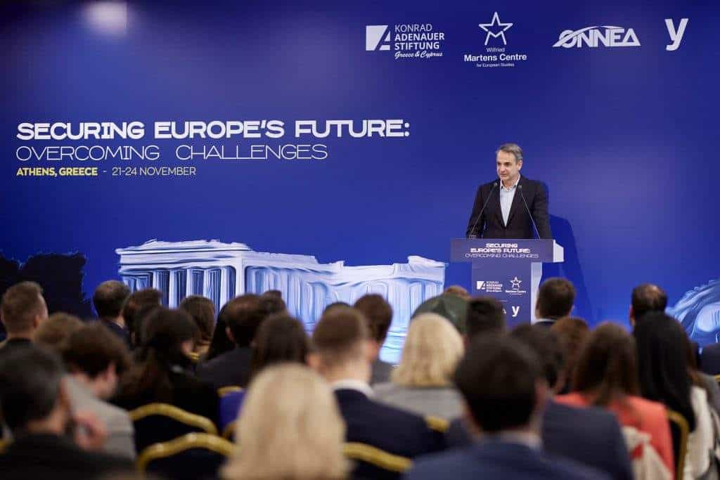 Ο πρωθυπουργός Κυριάκος Μητσοτάκης, απηύθυνε χαιρετισμό στο συνέδριο της νεολαίας του ΕΛΚ, με τίτλο «Securing Europe’s Future: Overcoming Challenges», που διοργανώνεται σε συνεργασία με το Ίδρυμα Konrad Adenauer Ελλάδας & Κύπρου και το Wilfried Martens Centre for European Studies, και φιλοξενείται από την ΟΝΝΕΔ στην Αθήνα.