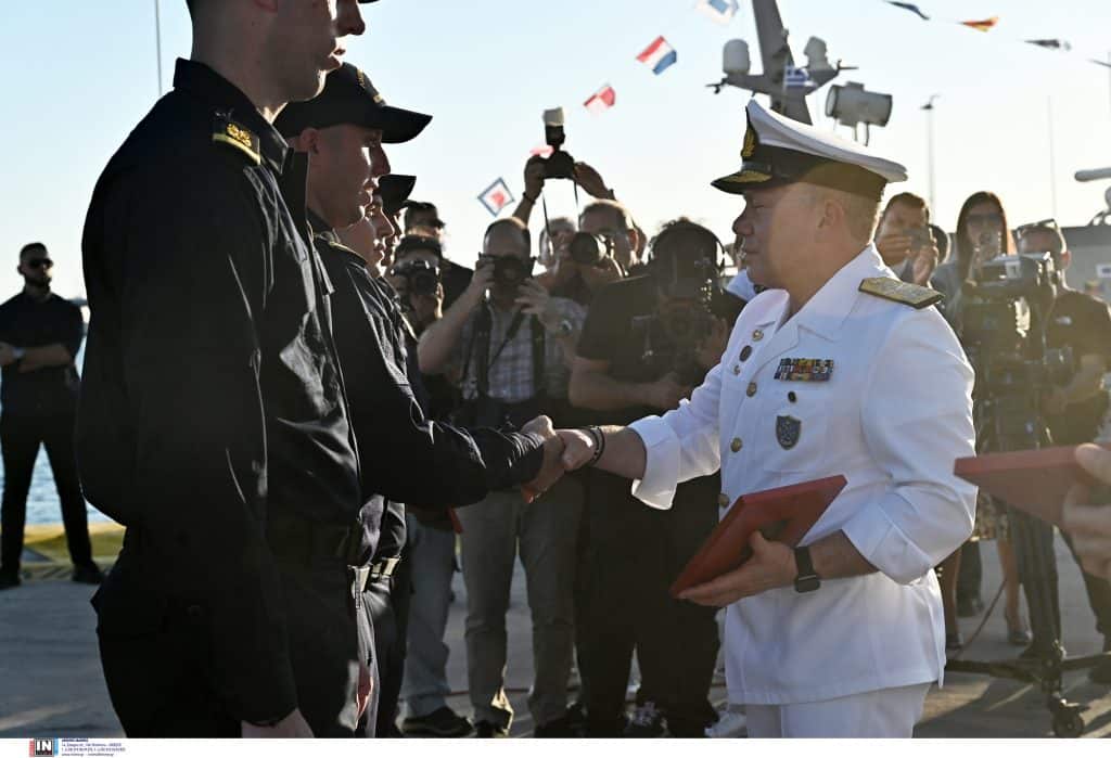 O Κυριάκος Μητσοτάκης έδωσε το παρών σε εκδήλωση του Υπουργείου Ναυτιλίας και Νησιωτικής Πολιτικής στον Πειραιά για την παραλαβή και ένταξη πέντε Ταχύπλοων Περιπολικών Σκαφών στο Λιμενικό Σώμα.