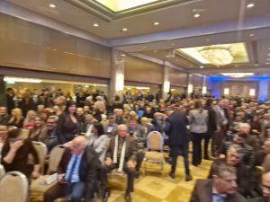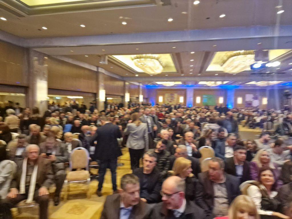 Πλήθος κόσμου έχει κατακλύσει αυτή την ώρα την αίθουσα του ξενοδοχείου Intercontinental όπου σε λίγο θα μιλήσει ο υπουργός Προστασίας του πολίτη Τάκης Θεοδωρικάκος παρουσία πολλών υπουργών της κυβέρνησης και στελεχών της Νέας Δημοκρατίας. Οι πολίτες που επιθυμούν να παρακολουθήσουν την ομιλία του είναι τόσο πολλοί που πολλοί από αυτούς αδυνατούν να μπουν πλέον εντός της αιθούσης του ξενοδοχείου με αποτέλεσμα να έχουν κατακλύσει τον περιβάλλοντα χώρο.