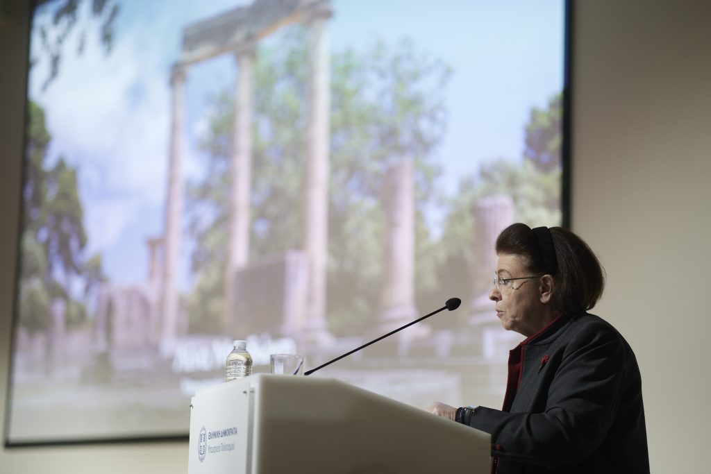Είναι ένα εμβληματικό έργο, κα Υπουργέ, το οποίο πράγματι χρησιμοποιεί την τελευταία λέξη της τεχνολογίας, όχι μόνο για να προβάλλει τον πολιτιστικό μας πλούτο, αλλά για να μπορέσει να δώσει και νέες διαστάσεις εμπειρίας. Μέσα από την τεχνολογία, την εικονική, την επαυξημένη πραγματικότητα, δίνεται η δυνατότητα στους επισκέπτες, και από απόσταση πια, να “ταξιδεύουν” στον χρόνο και να ταξιδεύουν και στην Ελλάδα, στα γεγονότα και παράλληλα προφανώς και στην τέχνη που τα πλαισίωσε, από την αρχαία Ολυμπία, τη Δήλο, το Σούνιο, μέχρι το Ασκληπιείο, τη Ροτόντα. Ουσιαστικά σε έναν δρόμο ο οποίος καθιστά το παρελθόν κατανοητό και ζωντανό μέρος του παρόντος.