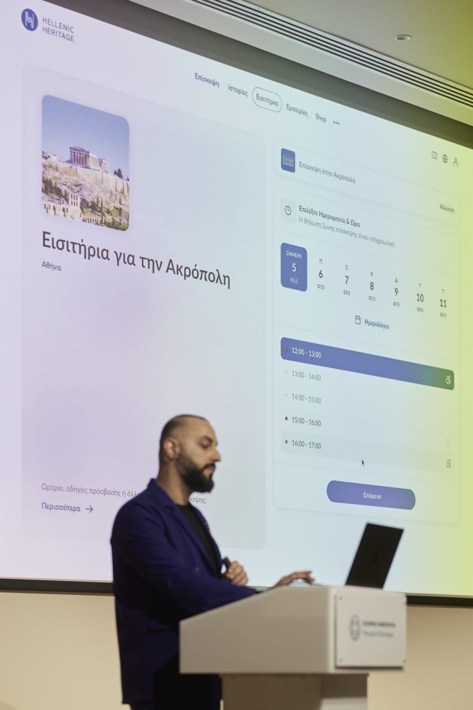 Γιατί πράγματι, με “όχημα” την τεχνολογία, στο εξής το Hellenic Heritage, με απλά λόγια το κεντρικό portal εισόδου για τον εθνικό πολιτισμό, αυτό το portal, λοιπόν, θα αναβαθμίζει ουσιαστικά την εμπειρία του επισκέπτη στα μουσεία, στα μνημεία, στους αρχαιολογικούς χώρους του τόπου μας.
