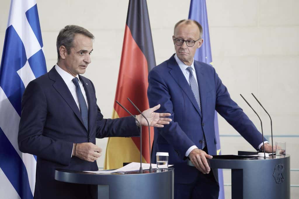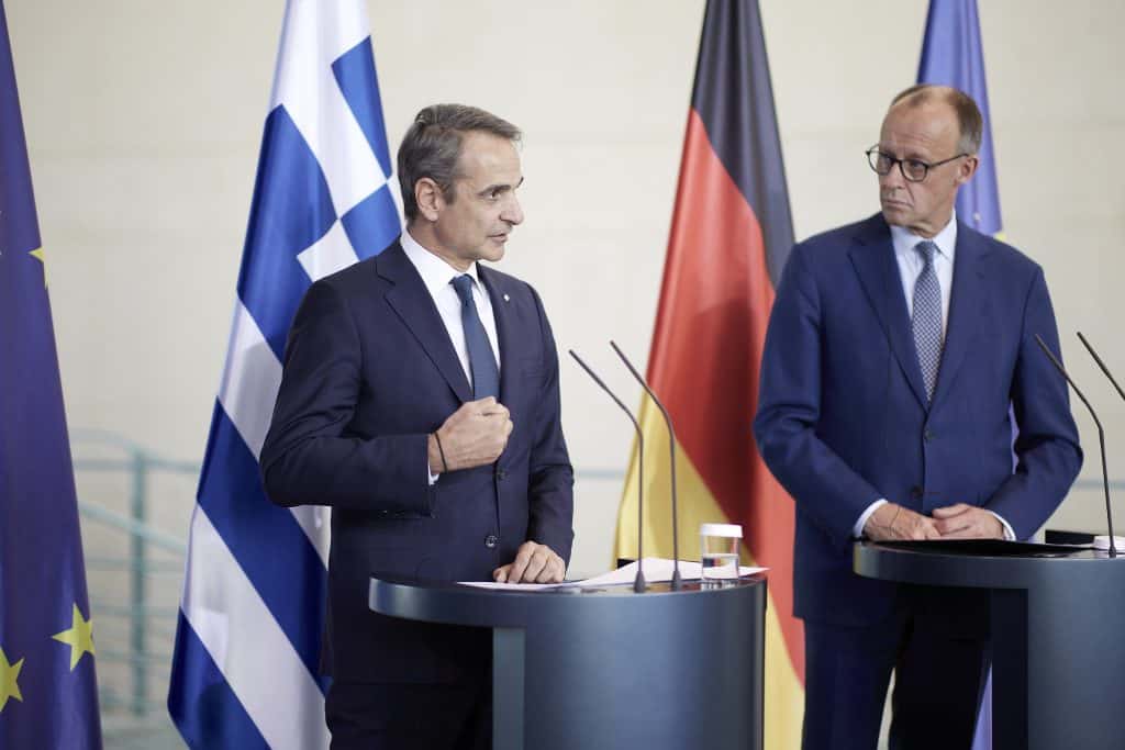 Και συνέχισε: «Ο καγκελάριος γνωρίζει καλά ότι η Ελλάδα εδώ και 6 χρόνια γράφει ένα νέο κεφάλαιο. Η οικονομία μας είναι σταθερή με μείωση της ανεργίας αύξηση των εξαγωγών και τους Γερμανούς να προτιμούν τη χώρα μας. Η συνετή πολιτική που ακολουθούμε αποτυπώνεται στα πρωτογενή πλεονάσματα στην καταπολέμηση της φοροδιαφυγής για να στηρίξουμε το διαθέσιμο εισόδημα των πολιτών. Ανακτήσαμε την επενδυτική βαθμίδα και αυτό είναι εφαλτήριο για περισσότερες επενδύσεις και από γερμανικές επιχειρήσεις. Η Ελλάδα γυρίζει σελίδα και την καθιστούν ελκυστικό προορισμό για επενδύσεις. Για την Ουκρανία συζητήσαμε και συμφωνούμε στην άμεση και άνευ όρων εκεχειρία των 30 ημερών και υπογραμμίσαμε ότι η ΕΕ πρέπει να βρεθεί στο κέντρο κάθε ειρηνικής διευθέτησης και το τιτάνιο έργο της ανοικοδόμησης. Η Ευρώπη οφείλει να είναι ενωμένη αναλαμβάνοντας την ευθύνη που της αναλογεί για την δική της άμυνα και με την ανάλογη χρηματοδότηση. Ανοίγονται νέα περιθώρια για συνεργασία και στον αμυντικό τομέα. Πρέπει οι συνομιλητές μας να ταυτίζονται με την ευρωπαϊκή πολιτική. Για το μεταναστευτικό η Γερμανία αντιλαμβάνεται τις προκλήσεις και ότι είμαστε στην πρώτη γραμμή και νύχτα μέρα προστατεύουμε τα ελληνικά και ευρωπαϊκά σύνορα. Το μεταναστευτικό είναι θέμα μείζονος εθνικής ασφάλειας».