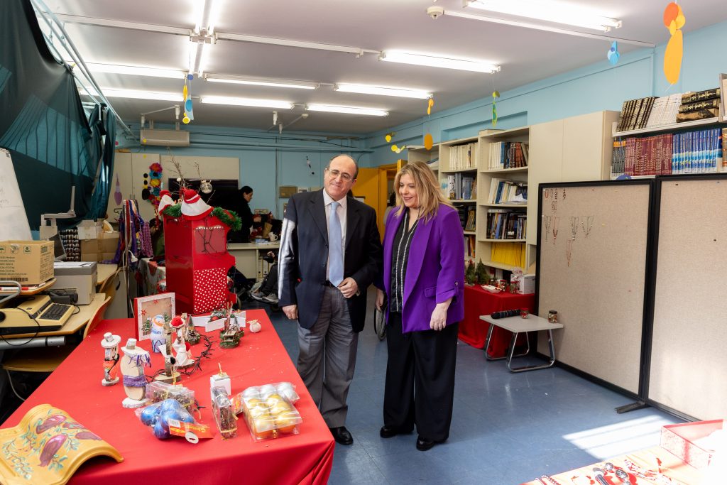 Στη συνέχεια, η κυρία Συρεγγέλα επισκέφθηκε το χριστουγεννιάτικο παζάρι του Ειδικού Λυκείου Ιλίου στο Εθνικό Κέντρο Αποκατάστασης, όπου ψώνισε χειροποίητα γούρια δημιουργίες των παιδιών. Οι μαθητές τής έψαλαν τα κάλαντα, αντάλλαξαν ευχές και συζήτησαν μαζί της για ζητήματα καθημερινότητας του σχολείου τους.