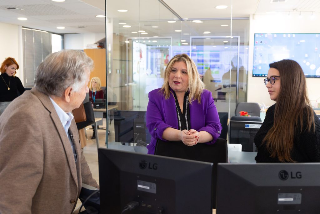 Η κυρία Συρεγγέλα ξεναγήθηκε από τον Πρόεδρο του Οργανισμού Κώστα Γιαννόπουλο στο Πανελλήνιο Συντονιστικό Επιχειρησιακό Κέντρο Άμεσης Κοινωνικής και Ιατρικής Επέμβασης «Ανδρέας Γιαννόπουλος» και στο Επιχειρησιακό Κέντρο από όπου συντονίζεται η λειτουργία της Εθνικής Τηλεφωνικής Γραμμής για τα Παιδιά SOS 1056, της Ευρωπαϊκής Γραμμής για τα Εξαφανισμένα Παιδιά 116000 και της Ευρωπαϊκής Γραμμής Υποστήριξης Παιδιών και Εφήβων 116111.