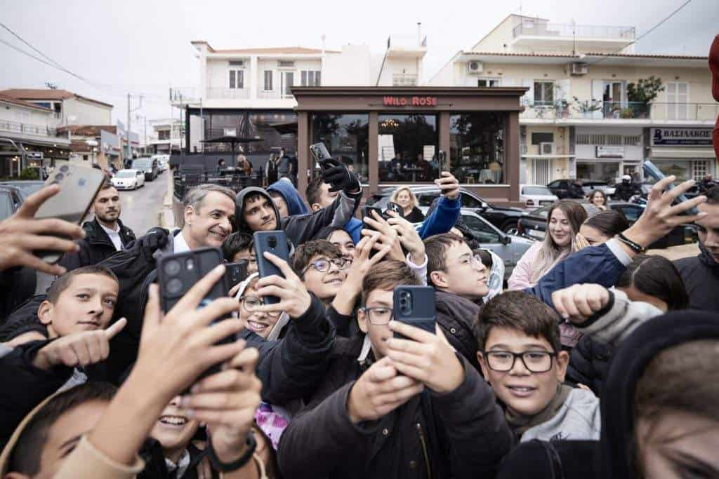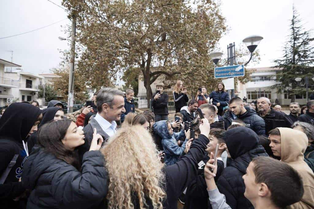 Εκεί ήταν και μαθητές. Ο Κυριάκος Μητσοτάκης συνομίλησε μαζί τους έβγαλε σέλφι και αστειεύθηκε μαζί τους για τα ποδοσφαιρικά.