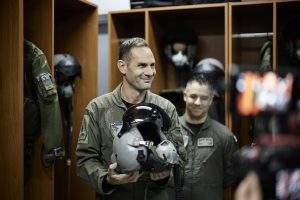 Κυριάκος Μητσοτάκης: Ναι, και πιστεύω ότι το κομμάτι αυτό της εκπομπής θα είναι πάρα πολύ ενδιαφέρον για τους τηλεθεατές σας, διότι πράγματι βρεθήκαμε στην καρδιά της Μοίρας που αποτελεί σήμερα την αιχμή της Πολεμικής Αεροπορίας. Και με το να συνομιλούμε και με τους χειριστές των αεροσκαφών αντιλαμβανόμαστε τον τρόπο με τον οποίο σκέφτονται, την ενέργεια την οποία επενδύουν σε αυτή την πολύ σημαντική δουλειά που κάνουν. Νομίζω ότι είναι κάτι αρκετά ξεχωριστό και διαφορετικό από τις συνηθισμένες εκπομπές που κάνουμε.