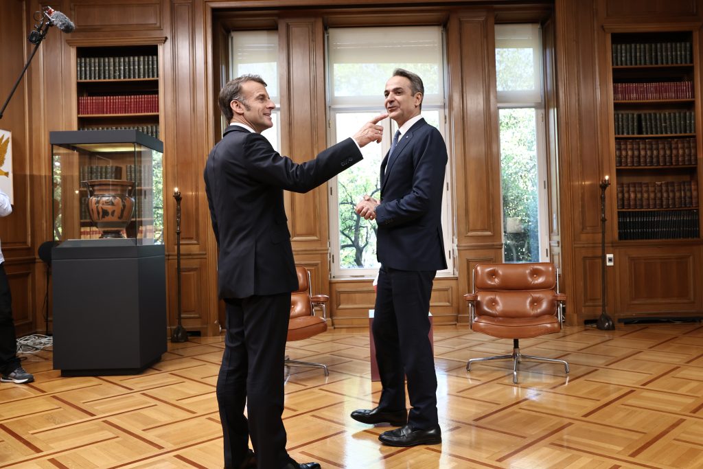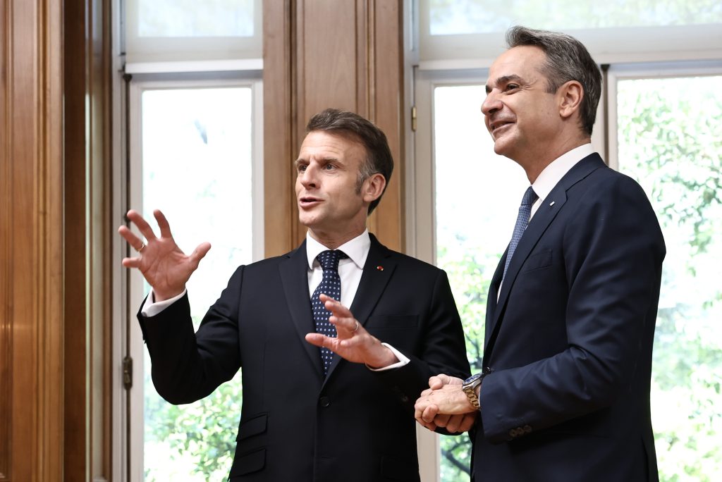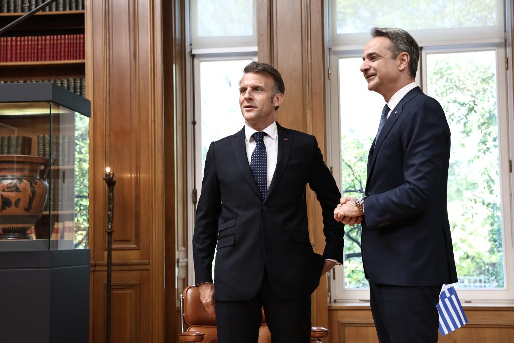Στο Μέγαρο Μαξίμου βρίσκονται αυτή την ώρα ο Πρωθυπουργός της Ελλάδας, Κυριάκος Μητσοτάκης και ο Πρόεδρος της Γαλλίας, Εμανουέλ Μακρόν, προκειμένου να υπογράψουν τη νέα αμυντική συνεργασία ανάμεσα στις δύο χώρες. Προηγήθηκε η επίσκεψή τους στην φρεγάτα «Κίμων» στον Πειραιά.