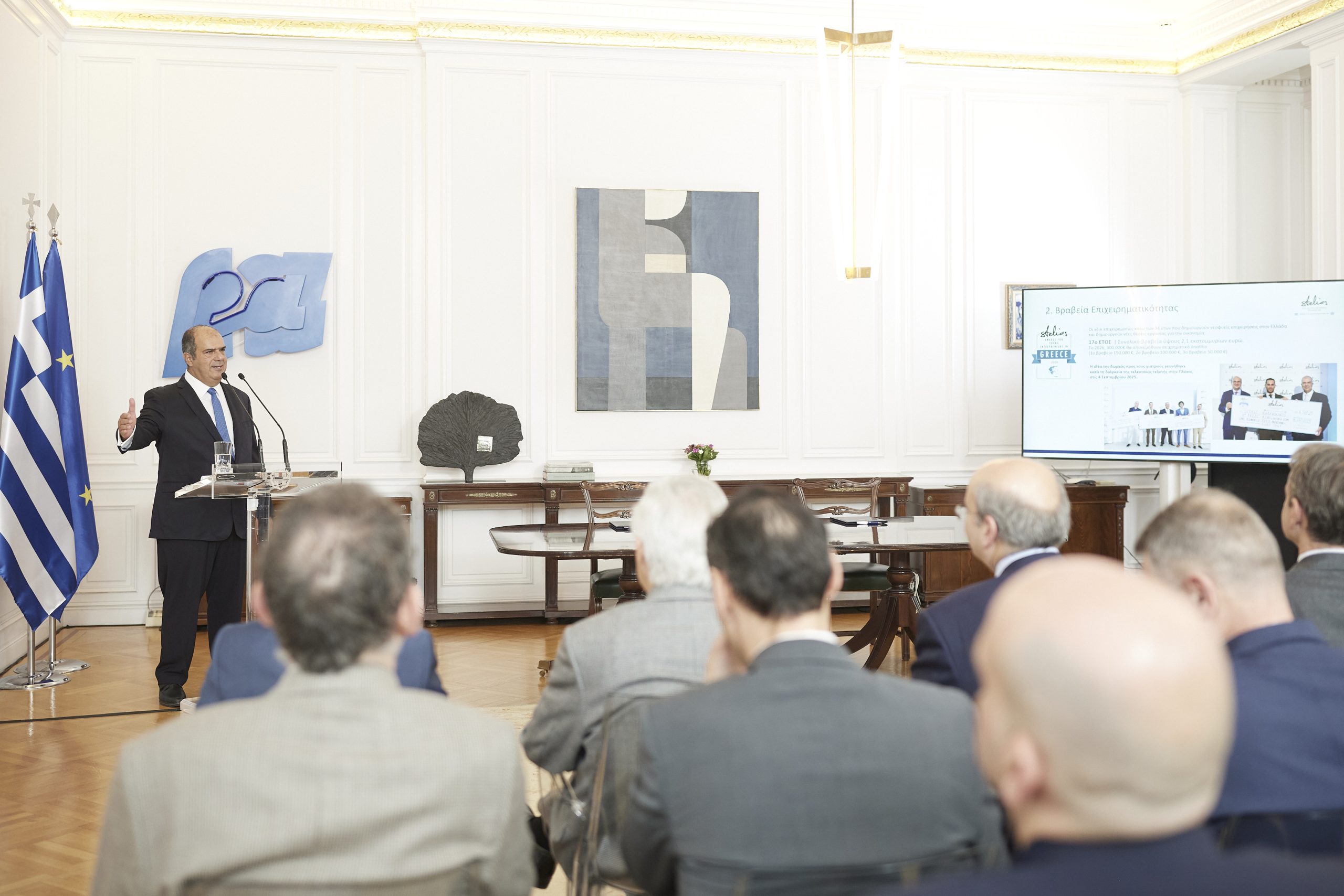«Αγαπητέ Στέλιο, κ. Αντιπρόεδρε, κ. Υπουργέ, κ. Αναπληρώτρια Υπουργέ, κυρία και κύριοι ΥΠΕάρχες, κυρίες και κύριοι, θέλω να ξεκινήσω εκφράζοντας τις θερμές μου ευχαριστίες στον Sir Στέλιο, για την εξαιρετικά ευγενική χορηγία, την οποία είχαμε την ευκαιρία να παρουσιάσουμε σήμερα.