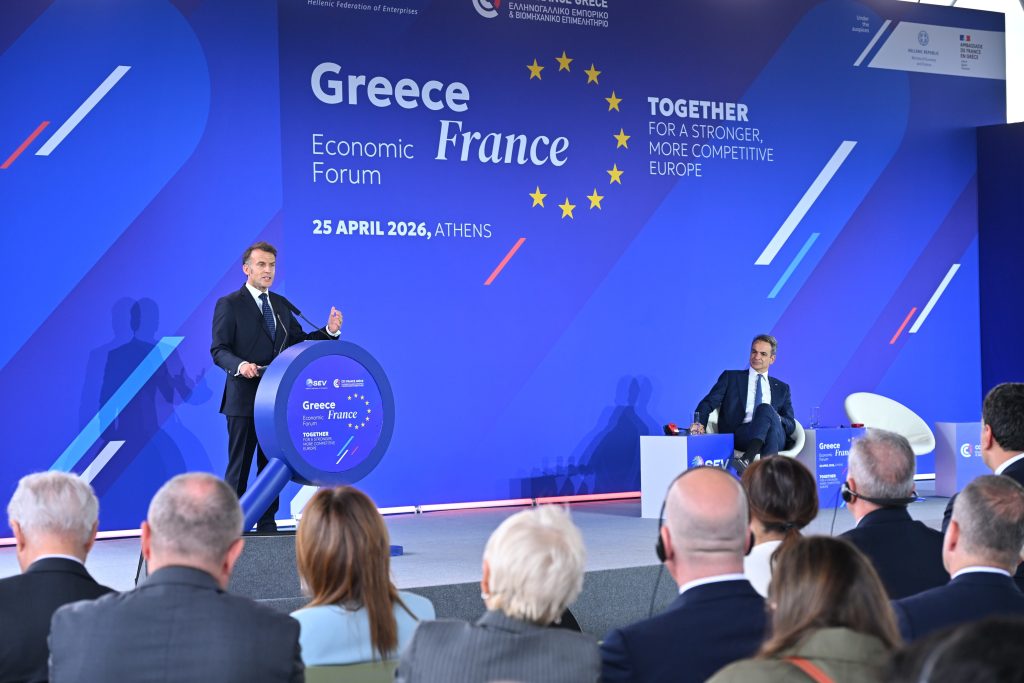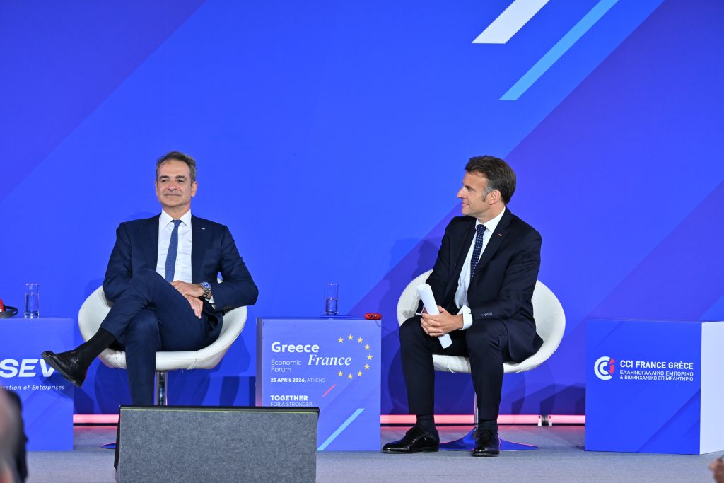 Χαιρετισμό στο Ελληνο-Γαλλικό Επιχειρηματικό Forum απηύθυναν οι Κυριάκος Μητσοτάκης και Εμανουέλ Μακρόν.