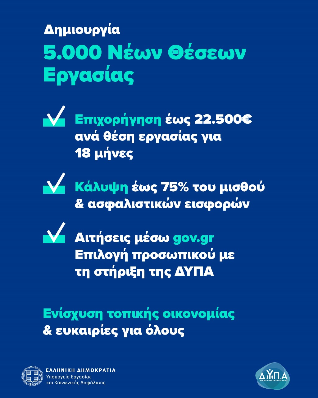 1.Πρόγραμμα δημιουργίας 5.000 νέων θέσεων εργασίας πλήρους απασχόλησης