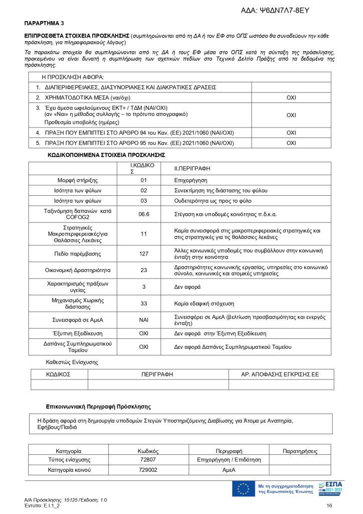 Η σχετική πρόσκληση απευθύνεται σε Φυσικά Πρόσωπα ή Νομικά Πρόσωπα Δημοσίου ή Ιδιωτικού Δικαίου, κερδοσκοπικού ή μη χαρακτήρα, καθώς και ΟΤΑ και Νομικά Πρόσωπα αυτών, που έχουν συνάψει Προγραμματική Σύμβαση με τους παραπάνω φορείς.
