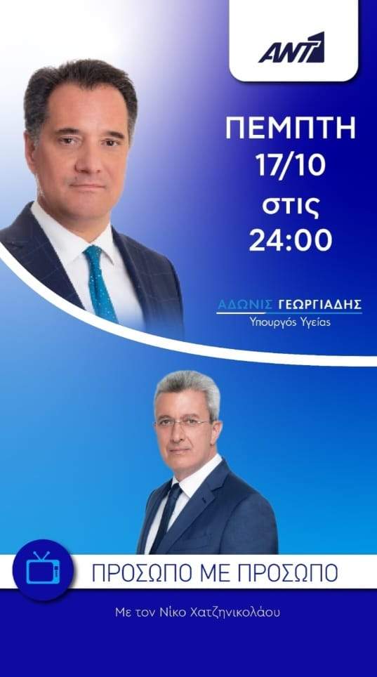 Ο Άδωνις Γεωργιάδης απόψε στις 24:00 Στην εκπομπή Πρόσωπο με Πρόσωπο με τον Νίκο Χατζηνικολάου