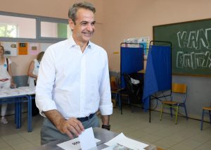 Ο Πρωθυπουργός και Πρόεδρος της Νέας Δημοκρατίας Κυριάκος Μητσοτάκης, συνοδευόμενος από τη σύζυγό του Μαρέβα Γκραμπόφσκι-Μητσοτάκη και τον γιο τους Κωνσταντίνο, άσκησε το πρωί το εκλογικό του δικαίωμα στο 1ο Γυμνάσιο Κηφισιάς.