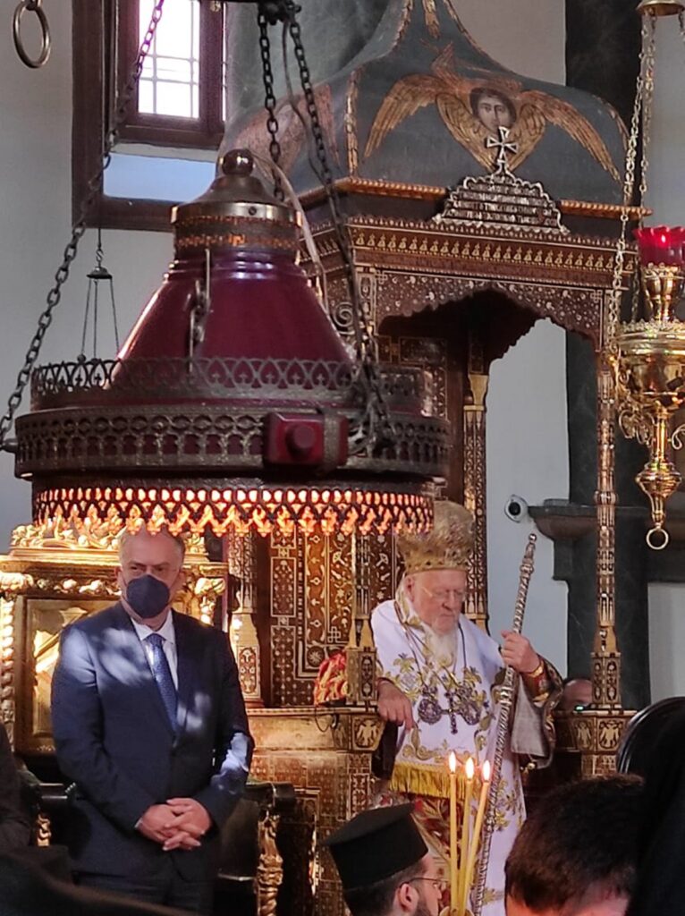 Ο Υπουργός είχε την ευκαιρία να παρακολουθήσει το τυπικό της ολοκλήρωσης της τελετής παρασκευής του Αγίου Μύρου με την ειδική ευχή που αναγιγνώσκει ο Προκαθήμενος της Ορθοδοξίας και να συμμετάσχει στη λιτάνευση του καθαγιασμένου πλέον Μύρου μέχρι το Μυροφυλάκιο του Οικουμενικού Πατριαρχείου, όπου θα φυλάσσεται για τα επόμενα δέκα έτη και θα αποστέλλεται σε όλες τις Ορθόδοξες Εκκλησίες ανά τον κόσμο για την τέλεση του Μυστηρίου του Χρίσματος.