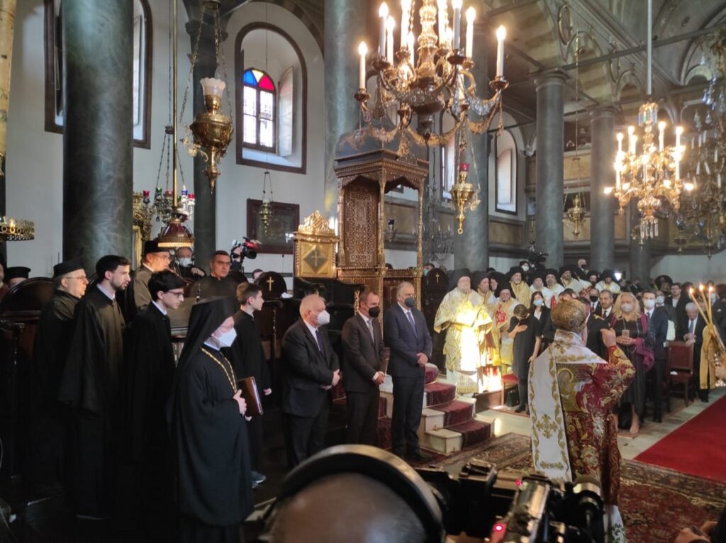 Ο Υπουργός Προστασίας του Πολίτη Τάκης Θεοδωρικάκος, συνεχίζοντας την προσκυνηματική του επίσκεψη στο Οικουμενικό Πατριαρχείο, παρέστη σήμερα, Μεγάλη Πέμπτη, στη Συνοδική Πατριαρχική Θεία λειτουργία που τελέσθηκε από τον Οικουμενικό Πατριάρχη κ.κ. Βαρθολομαίο στον Πατριαρχικό Ναό του Αγίου Γεωργίου στο Φανάρι, για τον καθαγιασμό του Αγίου Μύρου.