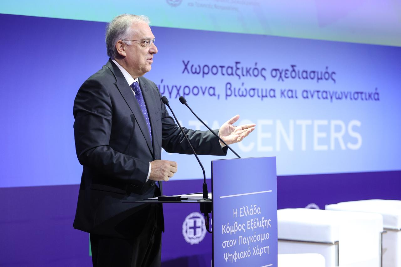 Τη μελέτη για τη χωροθέτηση και ανάπτυξη Κέντρων Δεδομένων (Data Centers) στην Ελλάδα παρουσίασε το υπουργείο Ψηφιακής Διακυβέρνησης και ΤΝ σε συνεργασία με τα υπουργεία Περιβάλλοντος και Ενέργειας και Ανάπτυξης. Η εκδήλωση πραγματοποιήθηκε στο Ωδείο Αθηνών, με τη συμμετοχή των υπουργών Ψηφιακής Διακυβέρνησης και ΤΝ, Δημήτρη Παπαστεργίου και Ανάπτυξης, Τάκη Θεοδωρικάκου.