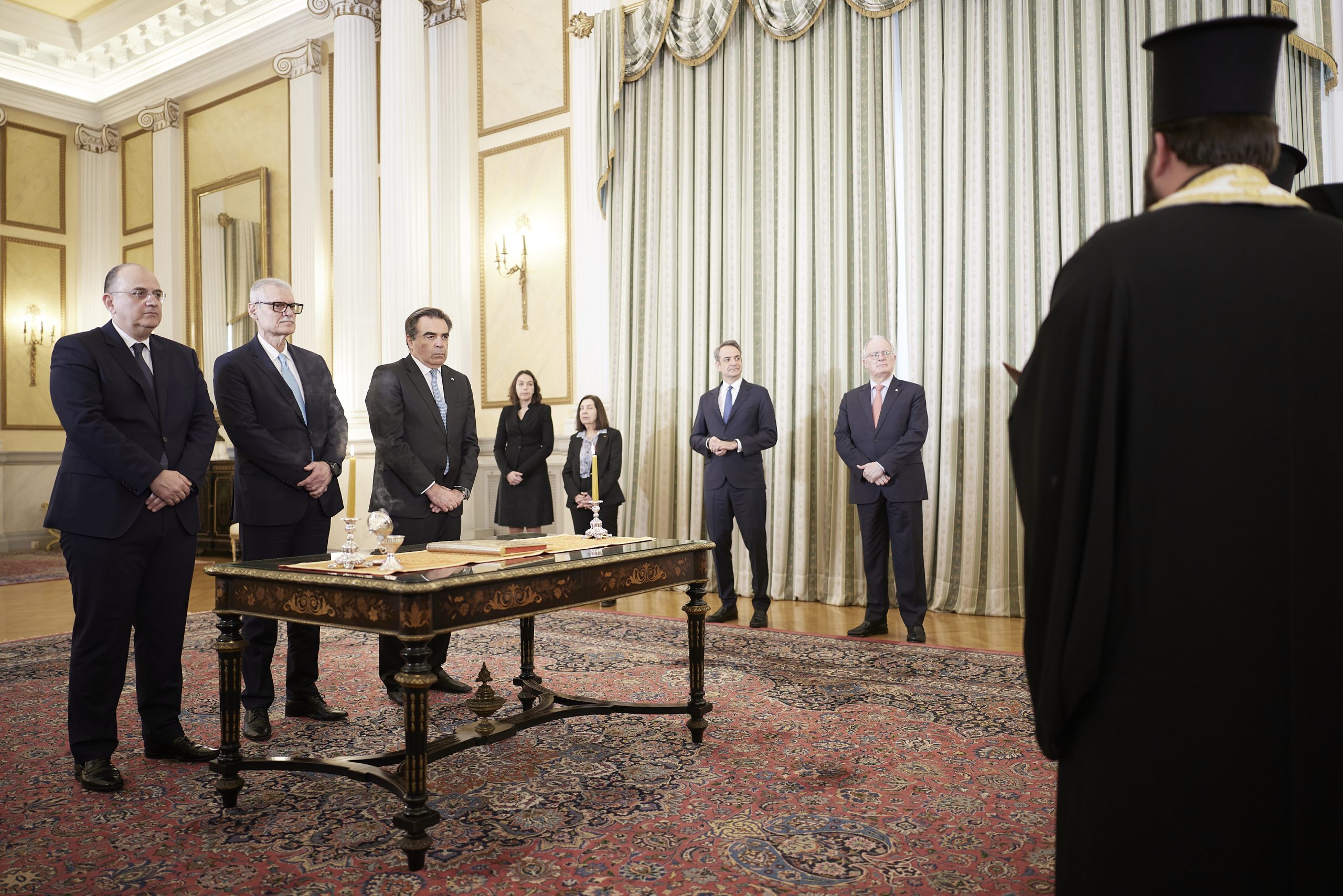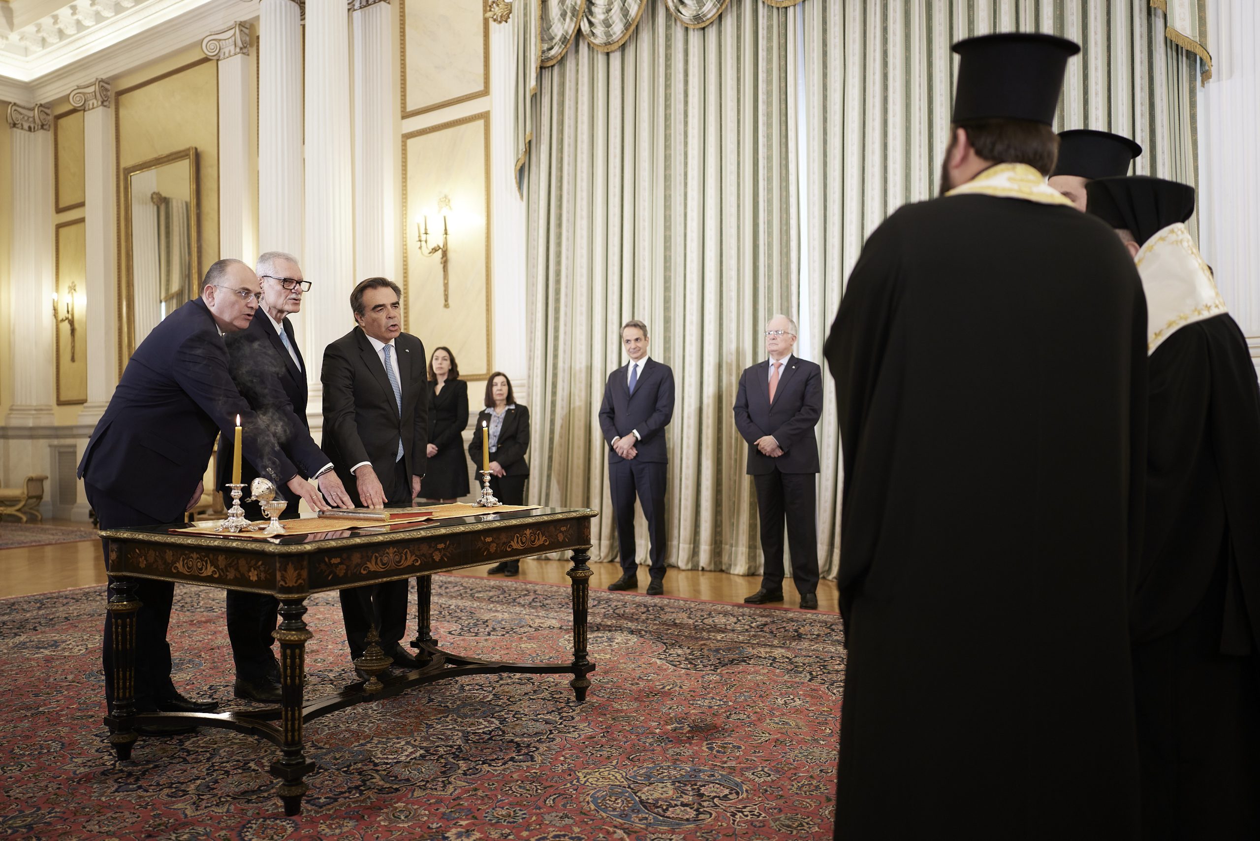 Στο Προεδρικό Μέγαρο έγινε η ορκωμοσία των νέων μελών της κυβέρνησης, του Μαργαρίτη Σχοινά στο υπουργείο Αγροτικής Ανάπτυξης και Τροφίμων, του υφυπουργού Αγροτικής Ανάπτυξης και Τροφίμων Μακάριου Λαζαρίδη και του Ευάγγελου Τουρνά στο υπουργείο Κλιματικής Κρίσης και Πολιτικής Προστασίας. Στα δύο υπουργεία παραμένουν ως υφυπουργοί οι Γιάννης Ανδριανός και Κώστας Κατσαφάδος αντιστοίχως. Η ορκωμοσία πραγματοποιείται παρουσία του Προέδρου της Δημοκρατίας Κωνσταντίνου Τασούλα και του Πρωθυπουργού Κυριάκου Μητσοτάκη.