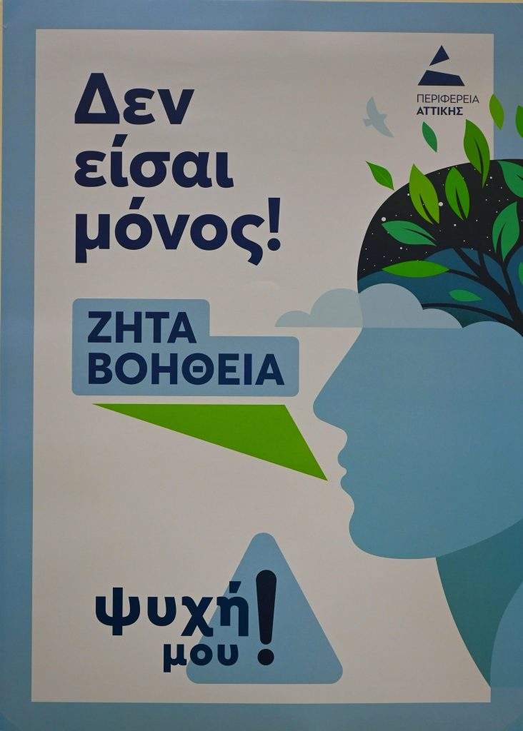 Η Περιφέρεια Αττικής λοιπόν, ενώνει τις δυνάμεις της για την ευαισθητοποίηση και την πρόληψη της ψυχικής υγείας με σειρά από ομιλίες και δράσεις για την πρώιμη παρέμβαση. Η ψυχική υγεία ανήκει σε όλους μας και πρέπει να εξασφαλίσουμε την πρόσβαση σε φροντίδα για όλους, ανεξαρτήτως κοινωνικής ή οικονομικής κατάστασης. Είμαστε αφοσιωμένοι στη στήριξη των χρόνιων ψυχικά πασχόντων και την καταπολέμηση του στίγματος που αφορά τις ψυχικές διαταραχές».