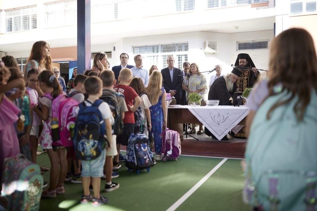 Ο Πρωθυπουργός Κυριάκος Μητσοτάκης παρέστη το πρωί στην τελετή αγιασμού για την έναρξη της νέας σχολικής χρονιάς στο 2ο Δημοτικό Σχολείο Γλυφάδας.