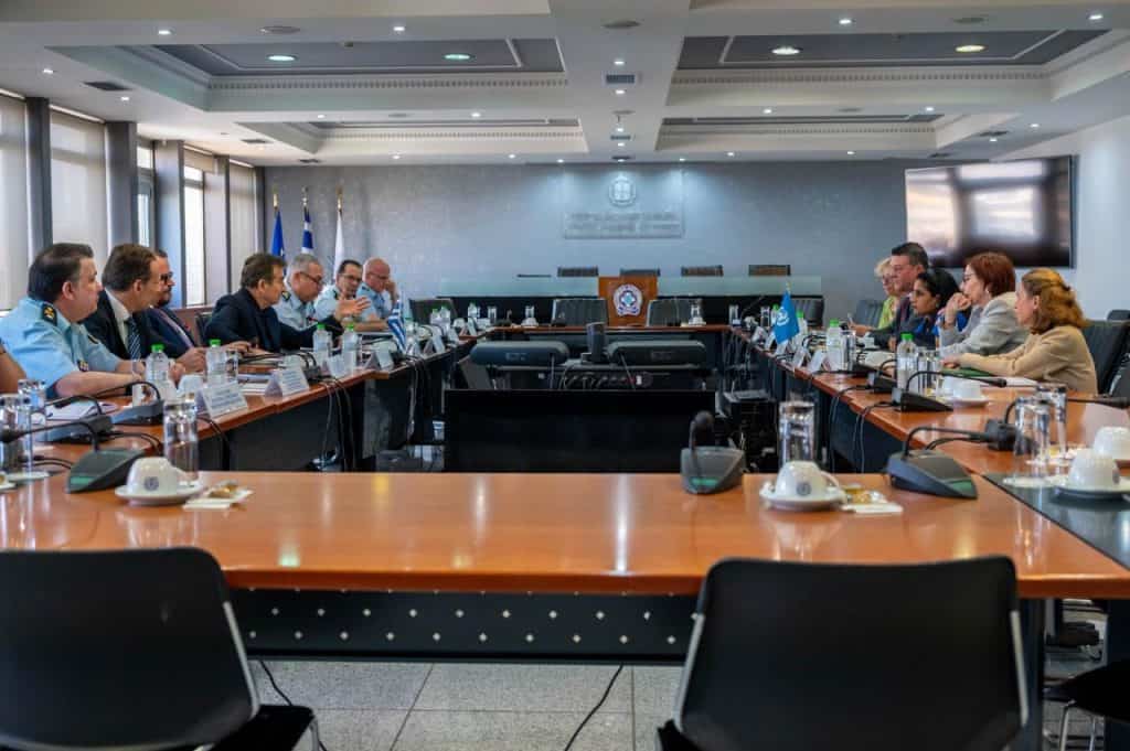 Στη συνάντηση παρέστησαν, επίσης, ο Αρχηγός της ΕΛ.ΑΣ, Αντιστράτηγος Δημήτριος Μάλλιος, ο Διπλωματικός Σύμβουλος του Υπουργού Προστασίας του Πολίτη, πρέσβης Γεώργιος Πετμεζάκης, Ανώτεροι Αξιωματικοί της ΕΛ.ΑΣ και Στελέχη της Ύπατης Αρμοστείας του ΟΗΕ για τους Πρόσφυγες.
