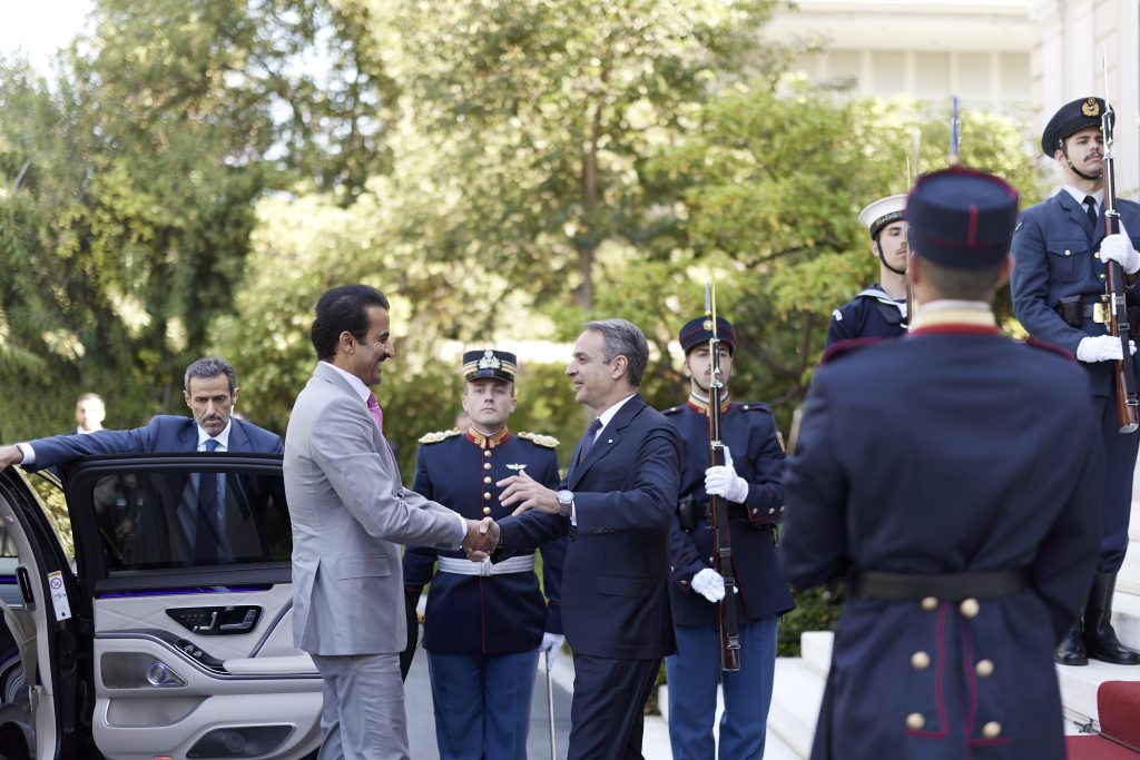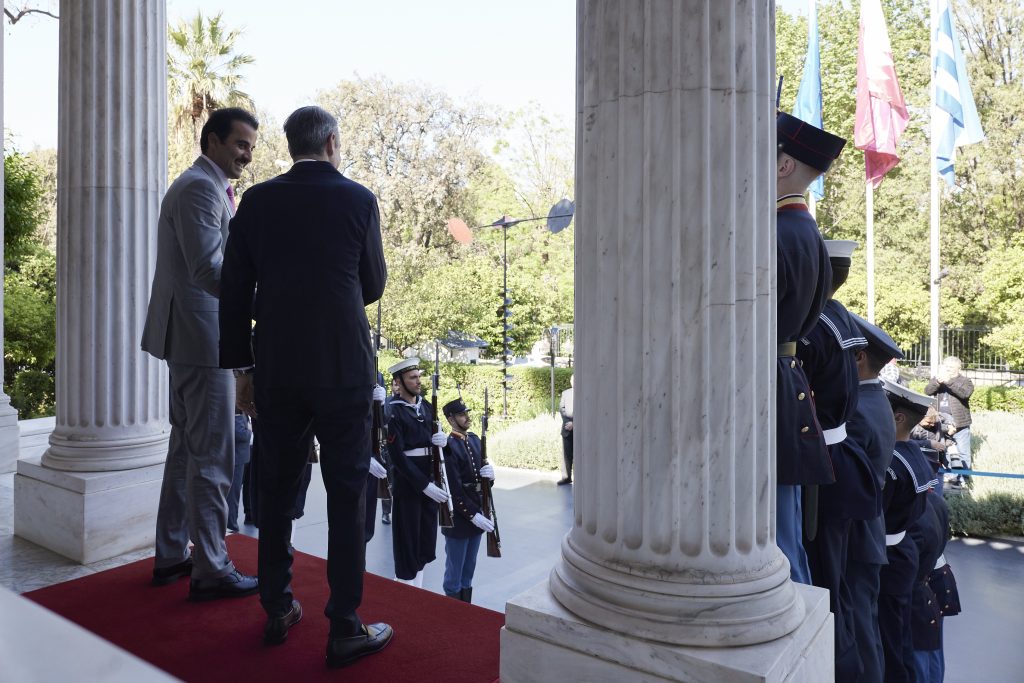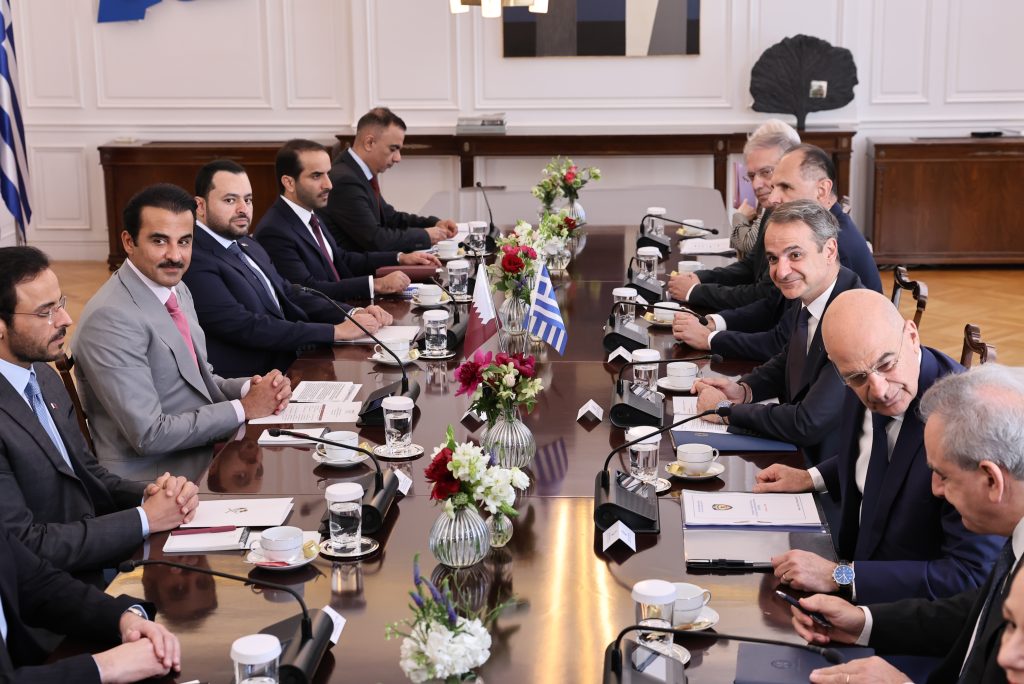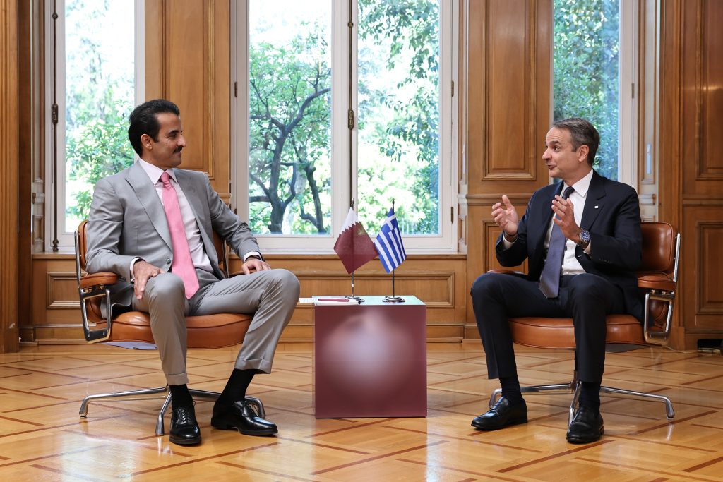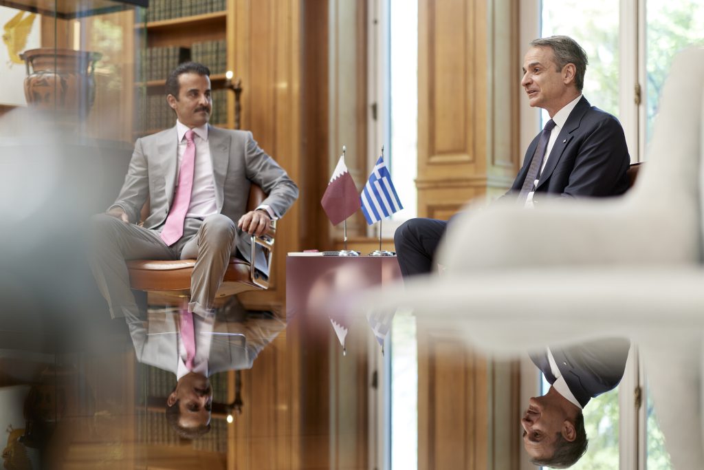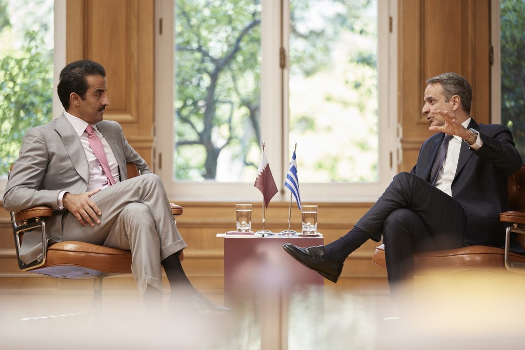 Ο Πρωθυπουργός Κυριάκος Μητσοτάκης συναντήθηκε το πρωί στο Μέγαρο Μαξίμου με τον Εμίρη του Κατάρ, Σεΐχη Tamim bin Hamad Al Thani.