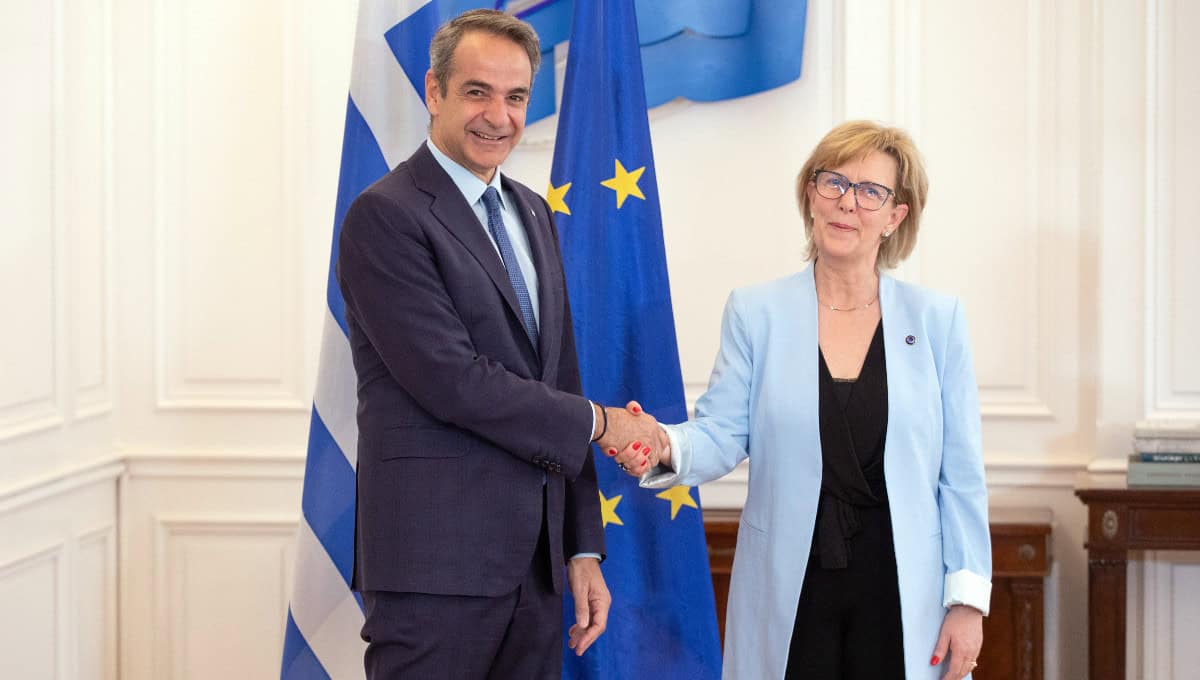 Ο Πρωθυπουργός Κυριάκος Μητσοτάκης συναντήθηκε το πρωί στο Μέγαρο Μαξίμου με την Επίτροπο Χρηματοοικονομικών Υπηρεσιών και Ένωσης Αποταμιεύσεων και Επενδύσεων της ΕΕ, Maria Luís Albuquerque.