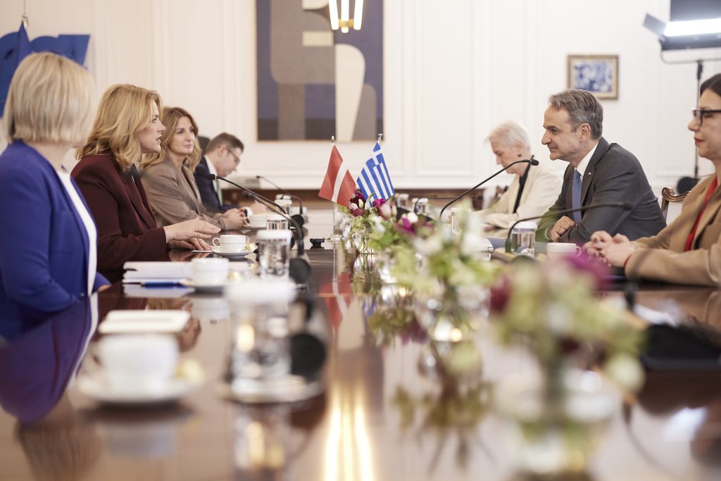 Ο Πρωθυπουργός Κυριάκος Μητσοτάκης συναντήθηκε το πρωί της Πέμπτης στο Μέγαρο Μαξίμου με την Πρωθυπουργό της Λετονίας, Εβίκα Σιλίνια.