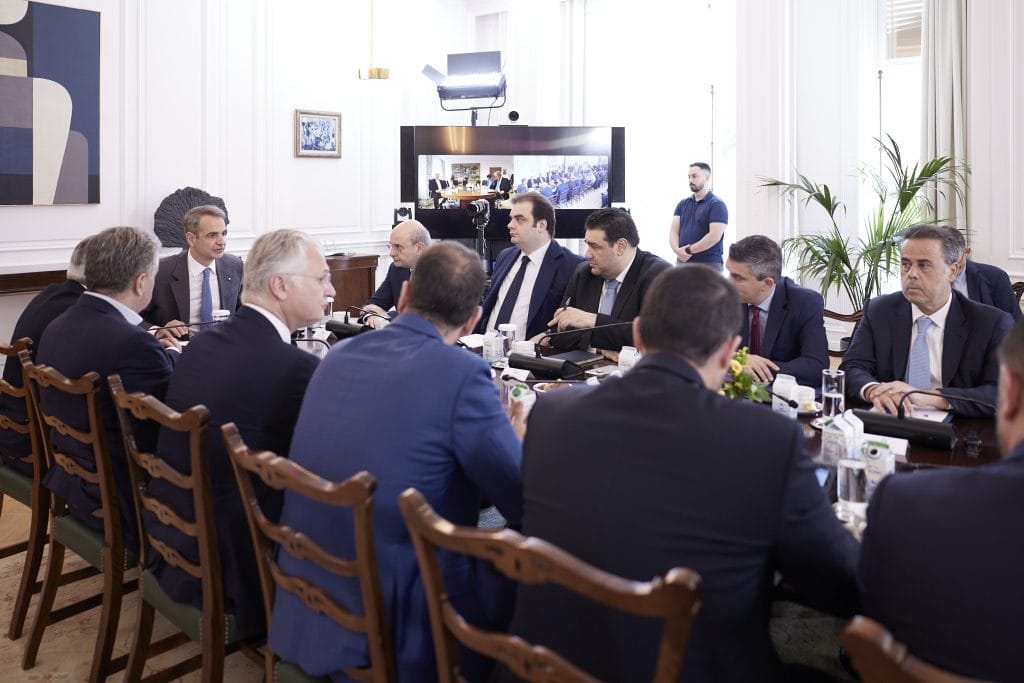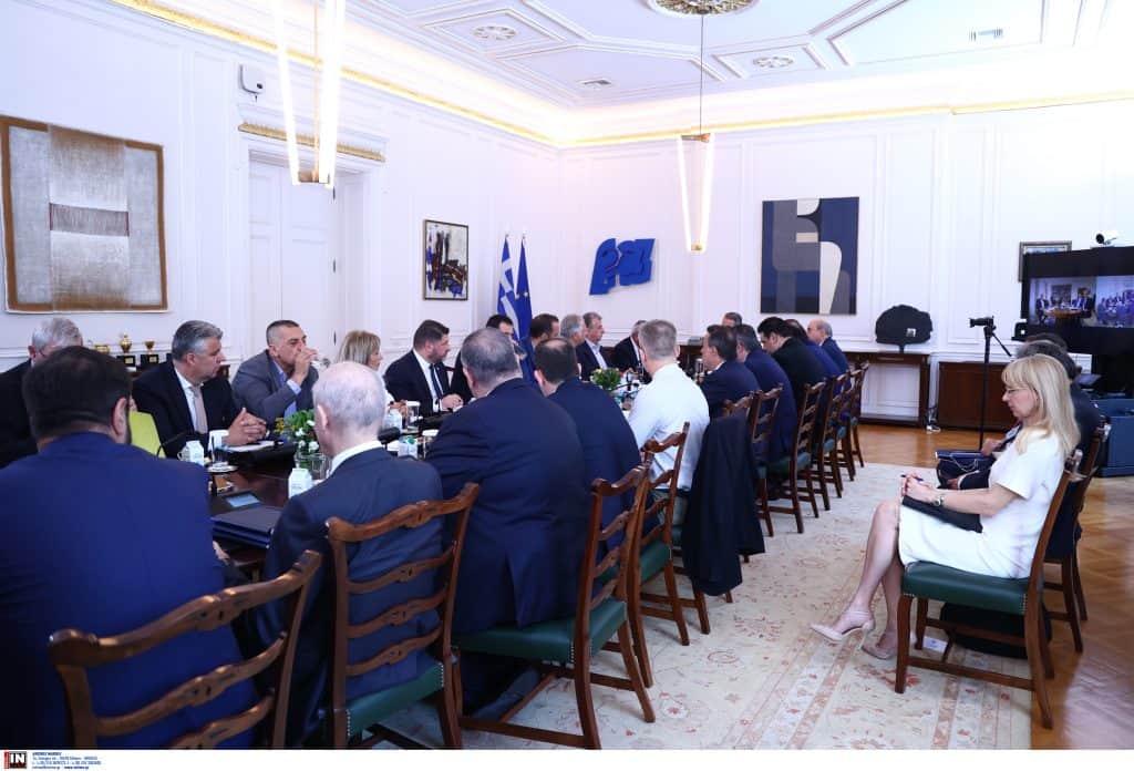Στη σύσκεψη έλαβαν μέρος, από πλευράς κυβέρνησης, ο Αντιπρόεδρος της κυβέρνησης Κωστής Χατζηδάκης, ο Υπουργός Εθνικής Οικονομίας και Οικονομικών Κυριάκος Πιερρακάκης, ο Υπουργός Εσωτερικών Θοδωρής Λιβάνιος, ο Υπουργός Υποδομών και Μεταφορών Χρίστος Δήμας, ο Υπουργός Περιβάλλοντος και Ενέργειας Σταύρος Παπασταύρου, ο Υπουργός Αγροτικής Ανάπτυξης και Τροφίμων Κώστας Τσιάρας, ο Υπουργός Επικρατείας Άκης Σκέρτσος, ο Αναπληρωτής Υπουργός Εθνικής Οικονομίας Νίκος Παπαθανάσης, ο Υφυπουργός Θάνος Πετραλιάς, ο Υφυπουργός Εσωτερικών Βασίλης Σπανάκης, ο Υφυπουργός Περιβάλλοντος και Ενέργειας Νίκος Ταγαράς, ο Υφυπουργός παρά τω Πρωθυπουργώ Θανάσης Κοντογεώργης, ο Υφυπουργός παρά τω Πρωθυπουργώ και Κυβερνητικός Εκπρόσωπος Παύλος Μαρινάκης και ο Υφυπουργός παρά τω Πρωθυπουργώ Γιώργος Μυλωνάκης.