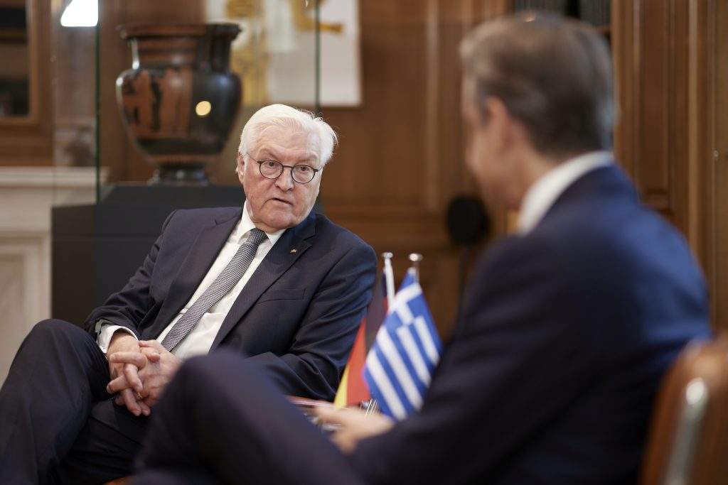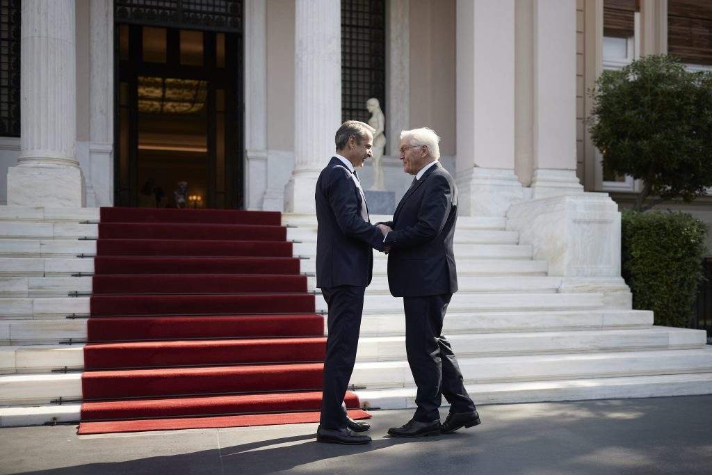 Ο πρωθυπουργός Κυριάκος Μητσοτάκης συναντήθηκε το πρωί στο Μέγαρο Μαξίμου με τον πρόεδρο της Ομοσπονδιακής Δημοκρατίας της Γερμανίας Φρανκ-Βάλτερ Σταϊνμάιερ, ο οποίος πραγματοποιεί επίσημη επίσκεψη στην Ελλάδα.