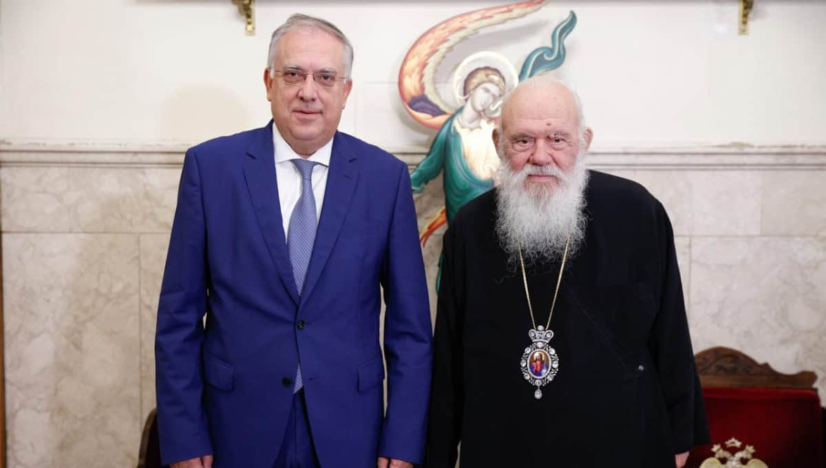 Τον Αρχιεπίσκοπο Αθηνών Ιερώνυμο συνάντησε ο υπουργός Ανάπτυξης, Τάκης Θεοδωρικάκος, στην Αρχιεπισκοπή Αθηνών.