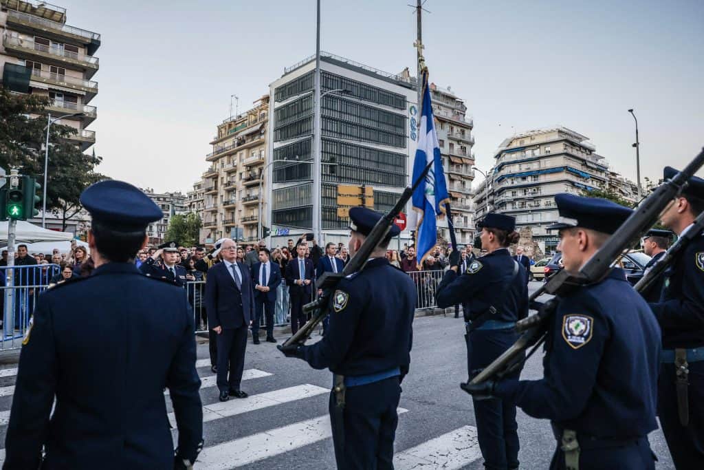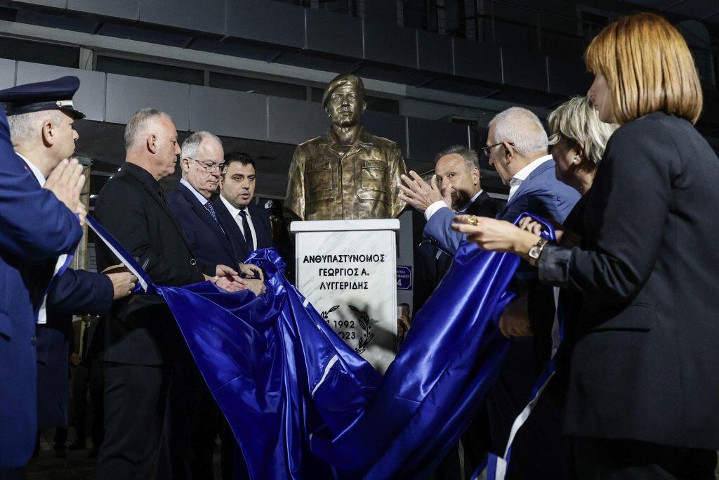 Τα αποκαλυπτήρια της προτομής του Γεωργίου Λυγγερίδη, του αστυνομικού των ΜΑΤ που έπεσε νεκρός, ύστερα από επίθεση χούλιγκαν στου Ρέντη, το Δεκέμβριο του 2023, έγιναν το απόγευμα στη Θεσσαλονίκη.