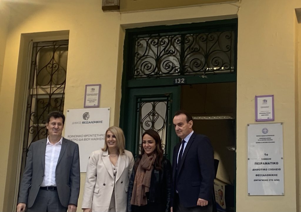 Η υφυπουργός ξεκίνησε την περιοδεία της στη Θεσσαλονίκη από το 1ο Πειραματικό Δημοτικό Σχολείο Θεσσαλονίκης όπου, όπως δήλωσε, «πραγματικά εξεπλάγην τρομερά θετικά με το πόσο πολυμήχανοι είναι οι εκπαιδευτικοί, αλλά πλέον και τα παιδιά, με 20 διαφορετικούς ομίλους, έναν καταπληκτικό όμιλο ρομποτικής, που βάζει τα παιδιά μας από την ηλικία του δημοτικού να αναπτύσσουν δεξιότητες, της ομαδικής δουλειάς, της τεχνολογίας, της δημιουργικής σκέψης και του κομματιού της τεχνολογίας στην καθημερινότητα, σε βαθμό που ούτε εμείς οι ίδιοι μπορούμε να ανταποκριθούμε σε αυτά που φτιάχνουν τα δικά μας τα παιδιά».