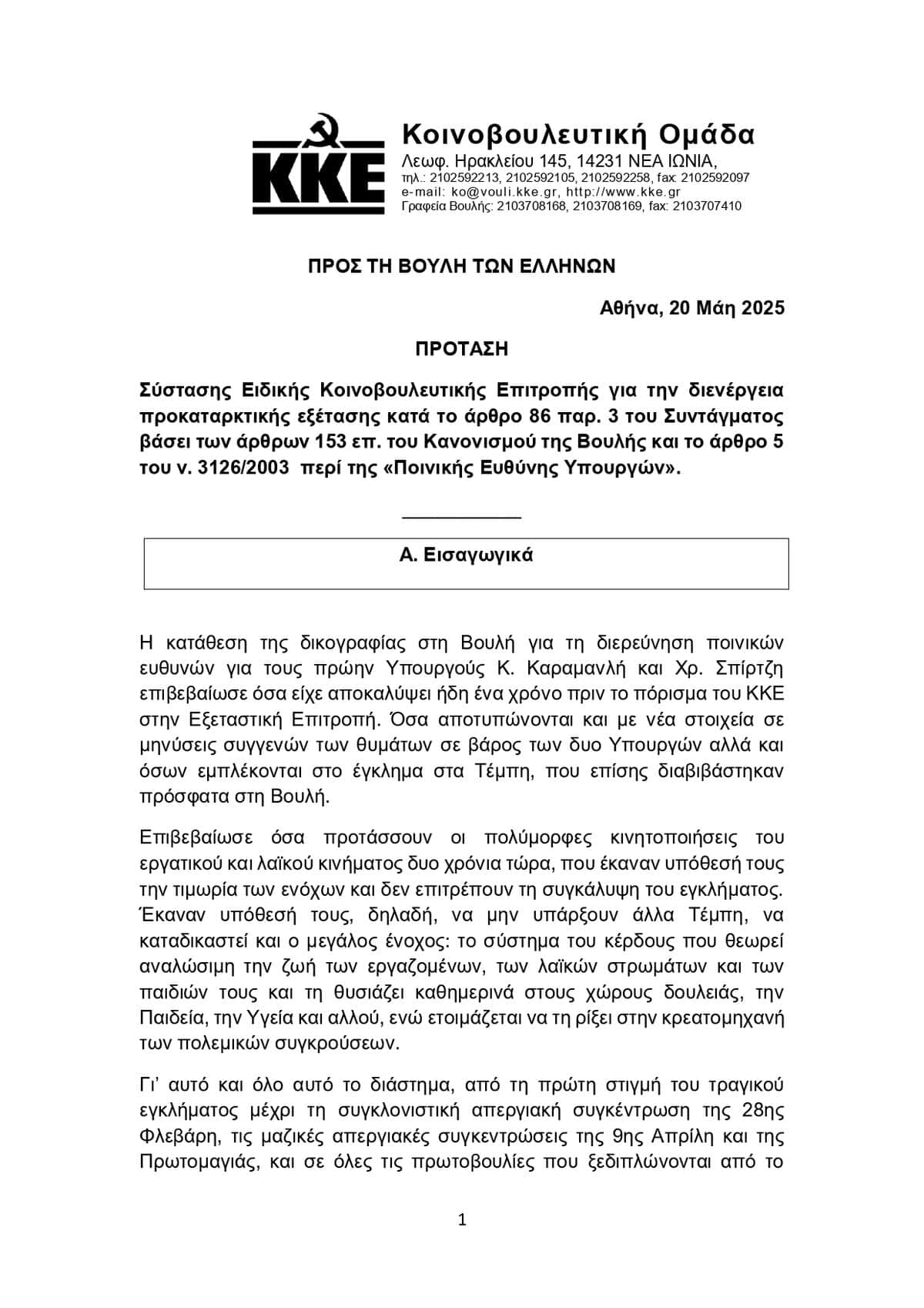 Ολόκληρο το κείμενο της πρότασης του ΚΚΕ: