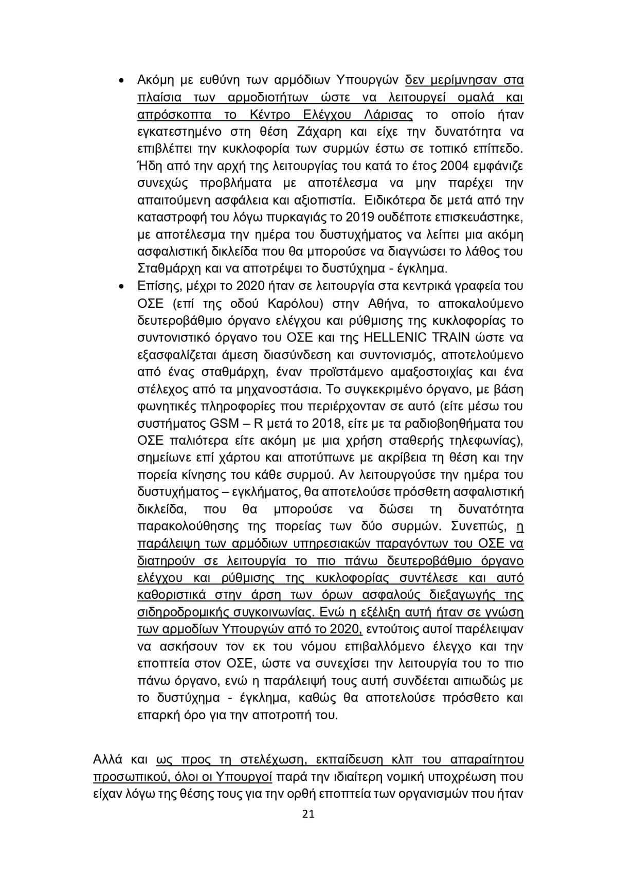 Εκτός αυτών, να διερευνηθούν οι ευθύνες του πρωθυπουργού Κυριάκου Μητσοτάκη, ως προϊσταμένου του Χρ. Τριαντόπουλου, καθώς και άλλων υπουργών επιπλέον «για την εκτεταμένη αλλοίωση του τόπου του εγκλήματος».