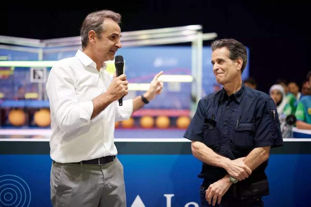 Ο Κυριάκος Μητσοτάκης, συνοδευόμενος από τον υφυπουργό Ψηφιακής Διακυβέρνησης Κωνσταντίνο Κυρανάκη, είχε την ευκαιρία να ενημερωθεί για τον διαγωνισμό «First Global Challenge» από τον ιδρυτή του Dean Kamen, να συνομιλήσει με μαθητές που διαγωνίζονται και να δει τα ρομπότ που έχουν κατασκευάσει.