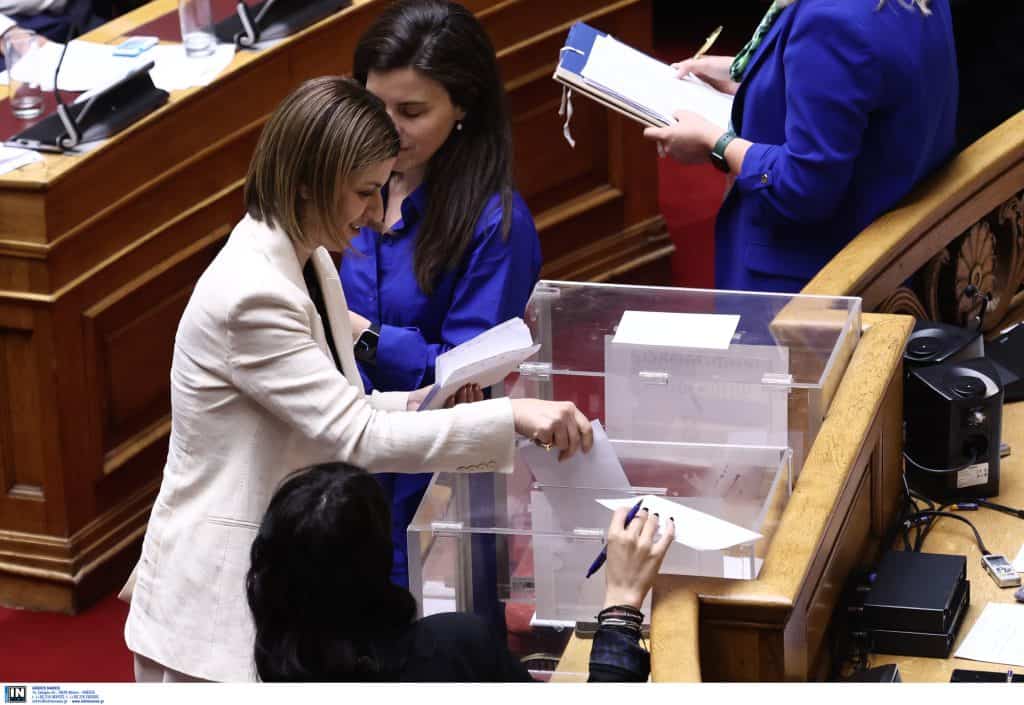 Η συζήτηση στην Ολομέλεια επί των τριών προτάσεων που κατατέθηκαν (της ΝΔ, του ΠΑΣΟΚ και των «4»), ολοκληρώθηκε στις 22:27 και στις 22:40 ξεκίνησε η ψηφοφορία, με 58 βουλευτές να απέχουν (ΣΥΡΙΖΑ, ΚΚΕ, Νέα Αριστερά) και να έχουν δικαίωμα ψήφου 239.