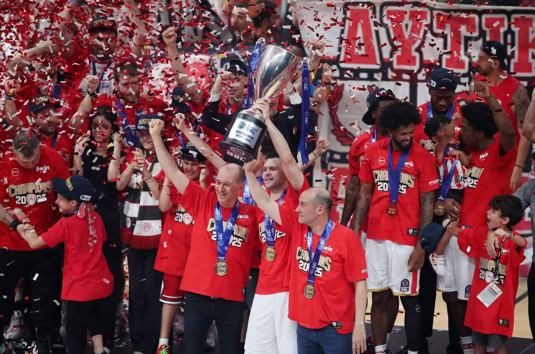 Πρωταθλητής Ελλάδας για 15η φορά στην Ιστορία του στέφθηκε ο Ολυμπιακός στο μπάσκετ! Δώρο ο τίτλος για τα 100α γενέθλια της ομάδας του Πειραιά από τους παίκτες του Γιώργου Μπαρτζώκα στους «πικραμένους» από την απώλεια του τροπαίου της Euroleague, φιλάθλους τους.