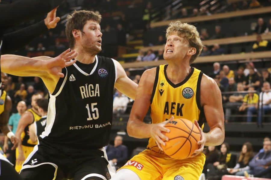 Η σοβαρή ΑΕΚ του δευτέρου ημιχρόνου συνέτριψε την VEF Ρίγα στη «Sunel Arena», γράφοντας το «4 στα 4» στο Basketball Champions League και βάζοντας πλώρη για την κατάκτηση της κορυφής του ομίλου! Οι «κιτρινόμαυροι» επικράτησαν με 95-64 της ουραγού του ομίλου, που μετράει τέσσερις ήττες σε ισάριθμες αναμετρήσεις.