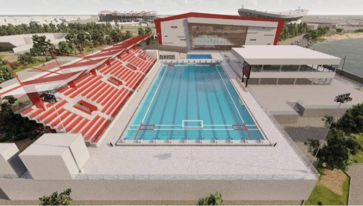 Το έργο, προϋπολογισμού 23,56 εκατ. ευρώ, περιλαμβάνει την κατασκευή δύο κολυμβητικών δεξαμενών (μίας κλειστής και μίας ανοιχτής), που θα στεγάσουν τα τμήματα υγρού στίβου των «ερυθρόλευκων», τόσο για τους αγώνες, όσο και για προπονήσεις, ενώ παράλληλα θα αποσυμφορήσουν το εδώ και χρόνια υπερκορεσμένο Εθνικό Κολυμβητήριο Πειραιά «Πέτρος Καπαγέρωφ».