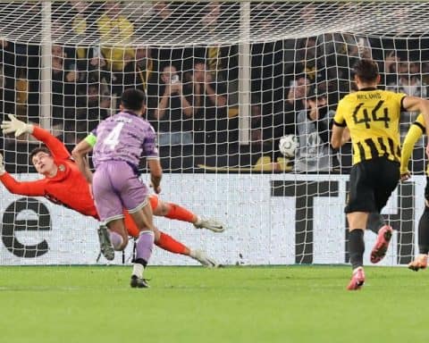 Στο 93′ Πενράις και Πήλιος συνδυάστηκαν ωραία, ο τελευταίος βρέθηκε σε θέση βολής, αλλά αστόχησε. Σόλο του Πινέδα στο 94′ ολοκληρώθηκε με σουτ του Μεξικανού από πλάγια δεξιά, με τον Ντε Χέα να αποκρούει με γροθιές. Η ΑΕΚ ξόδεψε έξυπνα – και χωρίς πανικό – το χρόνο φροντίζοντας να μην απειληθεί, φτάνοντας να πανηγυρίσει μία τεράστια νίκη.